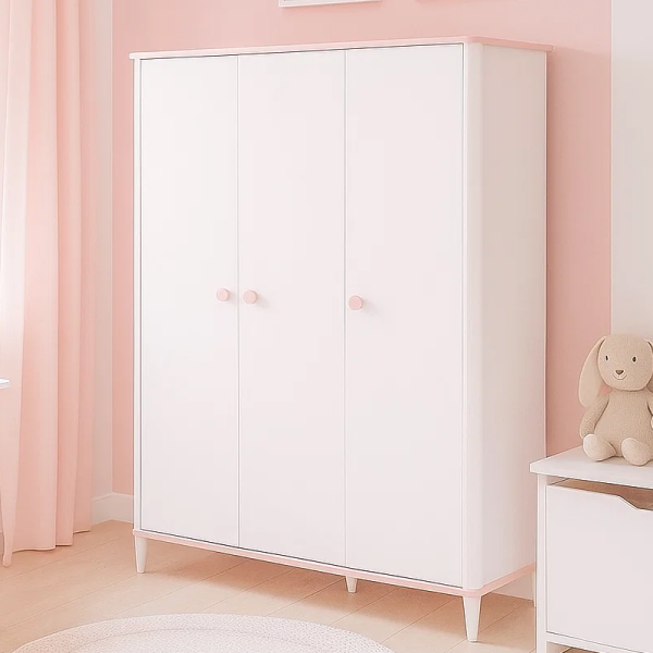 Детският гардероб LIMA с три врати впечатлява с елегантната си визия и деликатните розови акценти, които добавят топлина и мекота в интериора. Светлите тонове и изчистените линии го правят подходящ за различни стилове на обзавеждане – от класически до модерен.Вътрешното пространство е интелигентно организирано с пет просторни рафта и практичен лост за закачалки, което улеснява подреждането на дрехи, аксесоари и детски принадлежности. Механизмите за плавно затваряне осигуряват допълнителна безопасност, като елиминират шума и предотвратяват нежелано прищипване на пръсти.Гардеробът е част от серията LIMA, което позволява лесна комбинация с други мебели от същата линия – за цялостна и стилна детска стая.