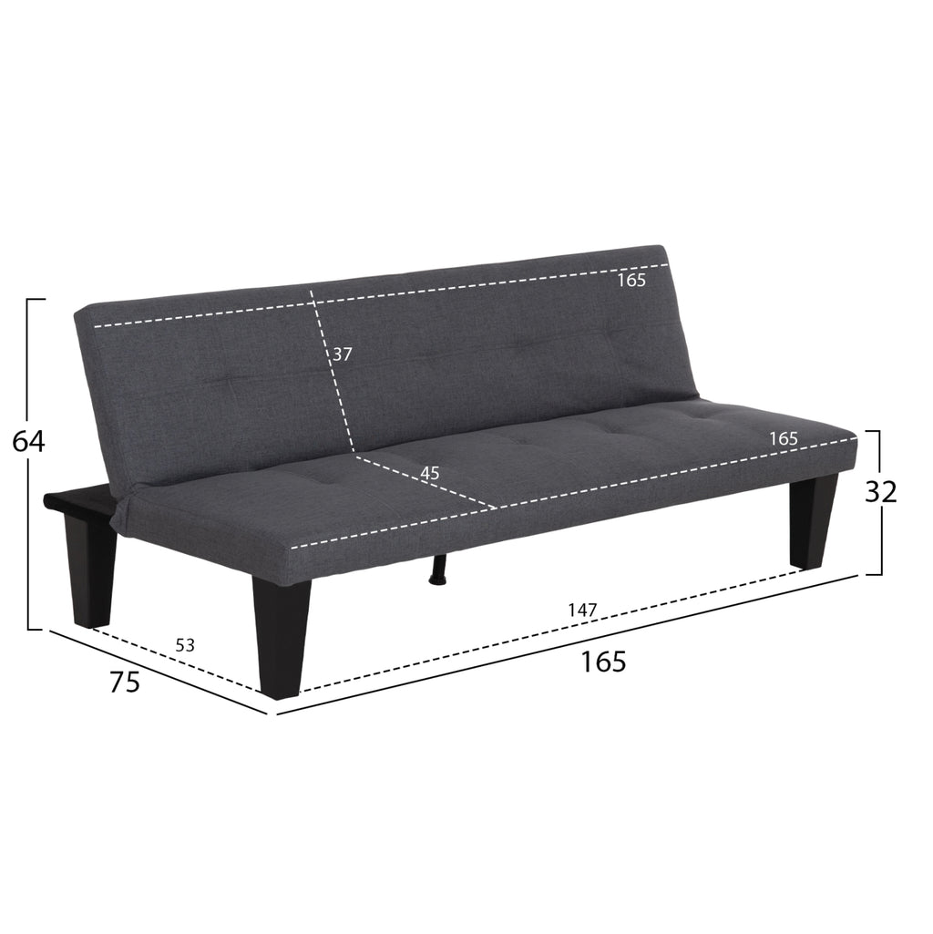 ТРИЙМЕСТЕН РАЗТЕГАЕМ ДИВАН "KORO" Разтегателният диван KORO е практично и здраво решение за ежедневна употреба, идеален за малки пространства, студентски къщи или хотелиерски помещения. Сивата тапицерия от PU кожа предлага издръжливост и лесна поддръжка, а щрак-клак механизмът позволява незабавно превръщане в легло. ______________________________________ МАТЕРИАЛИ • Сива тапицерия от PU кожа. Синтетичната кожа има текстура на ленен плат и е еволюцията на изкуствената кожа, но с основната характеристика, че не е лесно различима с окото от истинската кожа. • Черни полиетиленови крака. ______________________________________ ПОДДРЪЖКА • Почиствайте с влажна кърпа и мек препарат. • Избягвайте употребата на белина или агресивни химикали. • Не поставяйте продукта на пряка слънчева светлина за продължителни периоди. ______________________________________ ПРЕДИМСТВА • Идеален за малки пространства благодарение на липсата на подлакътници. • Издръжлива PU кожа, лесна за почистване. • Бързо превръщане в легло с щрак-клак механизъм. • Лека и стабилна конструкция за лесно преместване. ______________________________________ РАЗМЕРИ -165x75x64В см. Размери на седалката: 165x45 см. Размери на облегалката: 165x37 см. Височина на седалката: 32 см. -Размери на леглото: 165x83 см. Място за краката: 147x53 см. -------------------------------------------------------------------------------------------------------------------------- *Продуктът се доставя несглобен във фабрична опаковка. ** Цветопредаването на продукта може леко да се различава от фотографското му представяне на вашия екран.