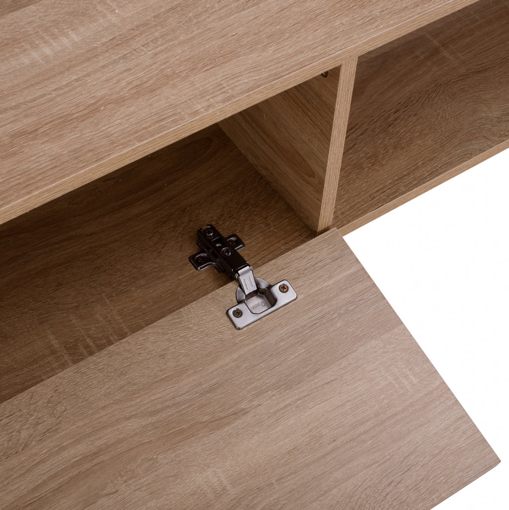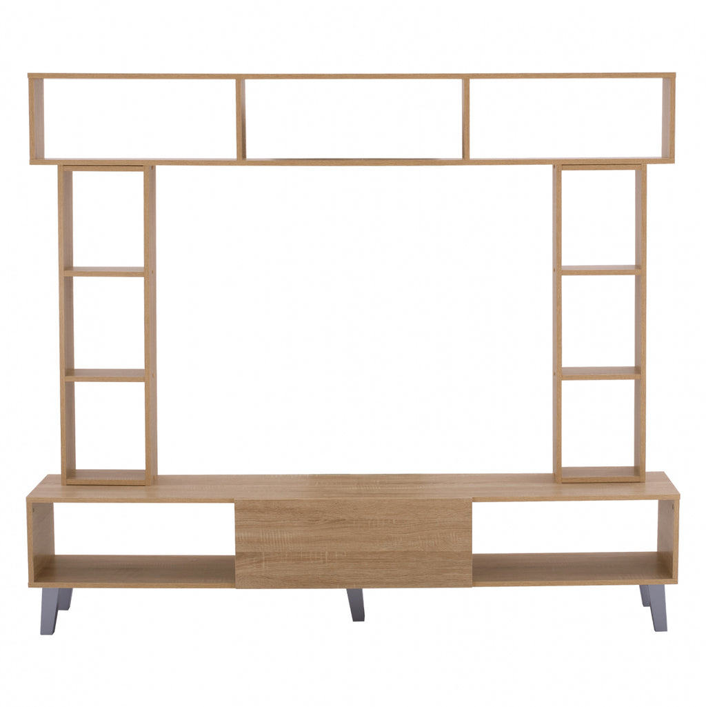 Телевизор в модерен, но семпъл дизайн, изработен от издръжлив висококачествен меламин, цвят sonama. Има два странични рафта и горен рафт с места за съхранение на всичките ви любими предмети. Модерният и семпъл дизайн е една от характеристиките, които искате за естетиката на вашата всекидневна, като същевременно предлага практичност с големите места за съхранение. Размери: 180.5х32х155.5 см. Размери на телевизора: 180.5x32x40 см. Размери на мястото за съхранение: 56x30x22.5 см. (х2) Размери на шкафа: 62х30х22,5см. Размери на странични рафтове: 25х14,5х90,5 см. Размери на мястото за съхранение: 22.5x14.5x28.5 (x3) Размери на горния рафт: 180.5x14.5x25.5 cm. Вътрешни размери на горен рафт A: 56x14.5x22.5 cm. (x2) Вътрешни размери на горен рафт B: 62x14.5x22.5 cm. Продуктът се предлага разглобен във фабрична опаковка.