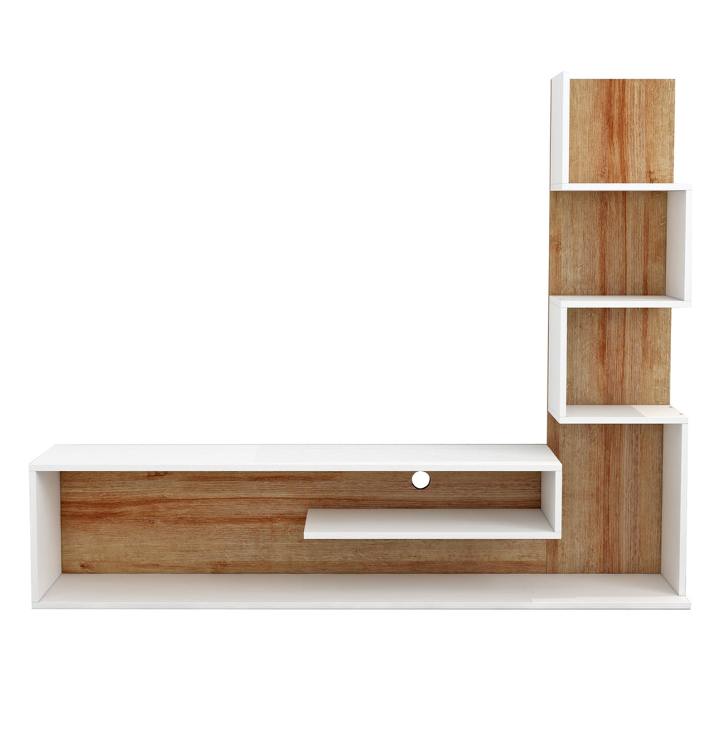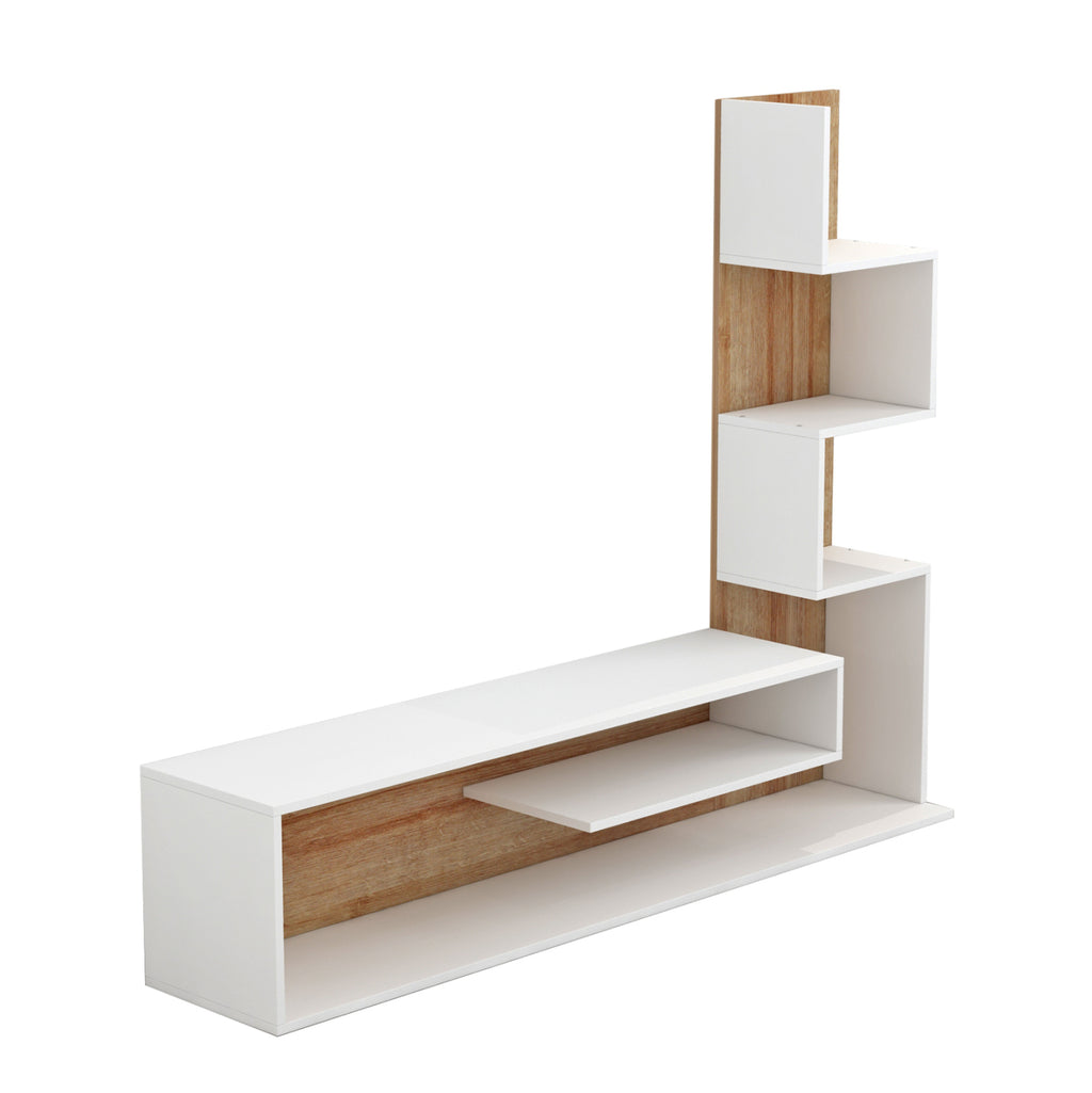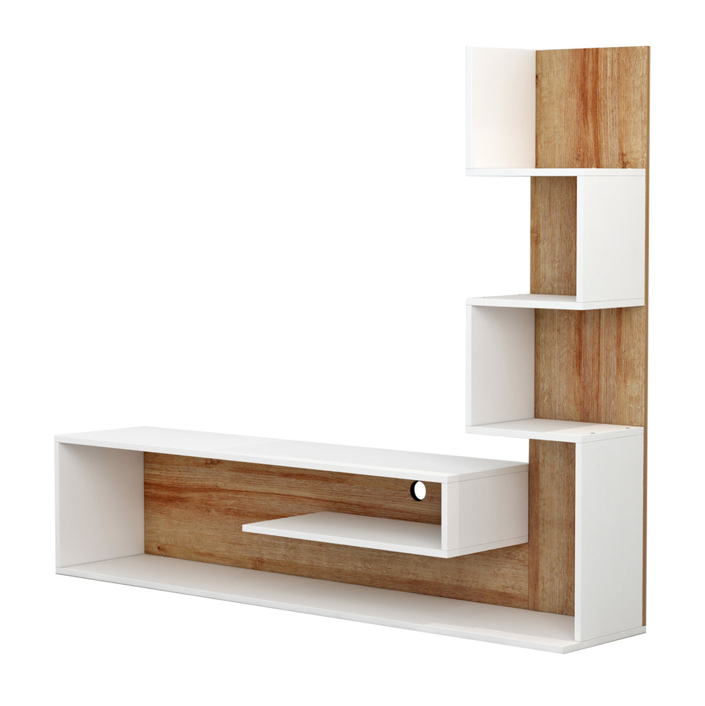 EDELIE е модерна и практична ТВ композиция в БЯЛО и НАТУРАЛЕН цвят, която ще разкраси всекидневната ви! Състои се от 2 части. Страната на телевизора, която е ниска, с рафт под основната повърхност и колона от рафтове от дясната страна. Дизайнът е в модерна линия и е сигурно, че откритите складови площи ще впечатлят и най-трудните, както с визия, така и с практичност. РАЗМЕРИ: 150х29,5х120см. ТВ страна: 120x29.5x33Mq. Рафт: 58X29cm Колона: 22x29.5x120cm. Рафтове: 1-ви: 22х29,5х38кв. 2-ра-3-та-4-та: 22x29,5x25кв. МАТЕРИАЛИ НА ИЗРАБОТКА: Цялата мебел е изработена от 15мм висококачествен меламин. Меламинът е вид дървесина под формата на ПДЧ. ПДЧ са продукти, които имат формата на плоча (панел). Това е синтетичен материал с много твърда повърхност, което го прави много устойчив на драскотини, абразия и петна. ПОДДРЪЖКА: Меламинът, който е строителният материал, се почиства много лесно от петна благодарение на твърдата си повърхност. Можете да забършете всички повърхности с влажна кърпа и това е достатъчно, за да изглеждат вашите мебели отново като нови. За упорити петна можете да използвате мек почистващ препарат. *Продуктът се доставя във фабрична опаковка, немонтиран ** Цветопредаването на продукта може леко да се различава от фотографското изображение на вашия екран.