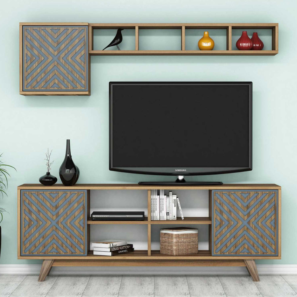 ΜΜ9516.02 е модерен и функционален телевизор в цвят ОРЕХ, който ще разкраси всекидневната Ви! Състои се от основната мебел и стенен шкаф и красиви рафтове. Основната мебел е дълга и има два дясно-леви шкафа с красив дизайн на СИНИТЕ врати. В средата има отворено складово пространство, разделено на 4 части. Композицията е завършена с стенен шкаф със СИНЯ врата и дълъг тесен рафт също разделен на 4 части. Композиция, която ще промени и надгради облика на вашия хол! РАЗМЕРИ: ОСНОВНО ОБЗАВЕЖДАНЕ: Дължина: 160см. Височина: 56,2 см. Дълбочина: 35 см. СТЕНЕН РАФТ: Дължина: 117,6см. Височина: 18,6 см. Дълбочина: 20см. СТЕНЕН ШКАФ: Дължина: 42.4см. Височина: 42,4 см. Дълбочина: 25 см. Дебелина на меламина: 18 мм. (1,8 см) МАТЕРИАЛИ НА ИЗРАБОТКА: Цялата мебел е изработена от висококачествен меламин. Меламинът е вид дървесина под формата на ПДЧ (панел). Като материал е много издръжлив и с голяма твърдост. Така че това е синтетичен материал с много твърда повърхност, което го прави много устойчив на драскотини, абразия и петна. Носещите крака на основната мебел са изработени от подсилен полиетилен. ПОДДРЪЖКА: Меламинът се почиства много лесно от петна благодарение на твърдата си повърхност. Можете да избършете всички повърхности с влажна кърпа и това е достатъчно. За упорити петна можете да използвате мек почистващ препарат. ПРЕДИМСТВА: Тази композиция е красива и разбира се практична. Основната мебел може да бъде фиксирана към стената за още по-голяма стабилност. Изработен от качествени материали, които го правят лесен за поддръжка, той е идеално предложение за дома на цена, която няма да ви позволи да търсите другаде! ПРОДУКТЪТ СЕ ПРЕДЛАГА РЕЗМОНТИРАН ВЪВ ФАБРИЧНАТА ОПАКОВКА