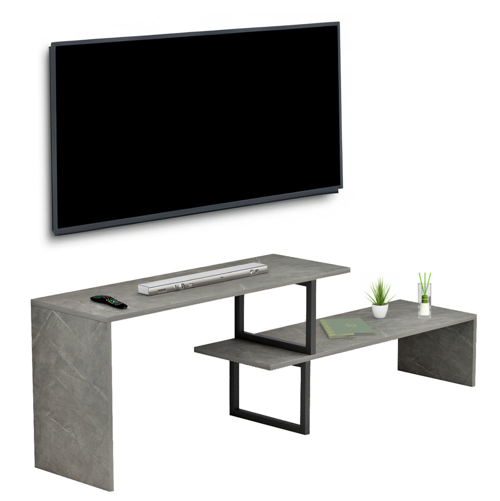 BRIGGITE е модерна и практична стойка за телевизор. Насочен е към тези, които не разполагат с голямо пространство, тъй като не е особено голям, но дизайнът му със сигурност ще хване окото. Причината е, че се състои от две части, които лежат една върху друга и дори могат да бъдат поставени в различна позиция по дължина (с възможност за разширяване). Това е елегантно и семпло предложение за вашия хол в цвят СИВА КАМЕННА ТЕКСТУРА с ЧЕРНИ метални опори! РАЗМЕРИ: Дължина: 110-160см. Височина: 45см. Дълбочина: 30см. Дебелина на меламина: 15 мм. (1.5 см.) Размери на метала: 20х20мм МАТЕРИАЛИ НА ИЗРАБОТКА: Мебелите са изработени от висококачествен меламин. Меламинът е вид дървесина под формата на ПДЧ. ПДЧ са продукти, които имат формата на плоча (панел). Това е синтетичен материал с много твърда повърхност, което го прави много устойчив на драскотини, абразия и петна. ПОДДРЪЖКА: Меламинът се почиства много лесно от петна благодарение на твърдата си повърхност. Можете да избършете всички повърхности с влажна кърпа и това е достатъчно. За упорити петна можете да използвате мек почистващ препарат. *Продуктът се доставя несглобен във фабрична опаковка **Точното цветопредаване на продукта може леко да се различава от действителния продукт поради различните настройки на всеки монитор.