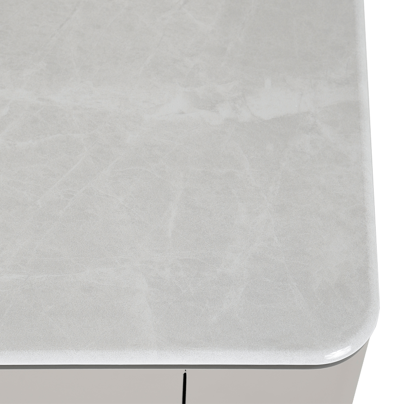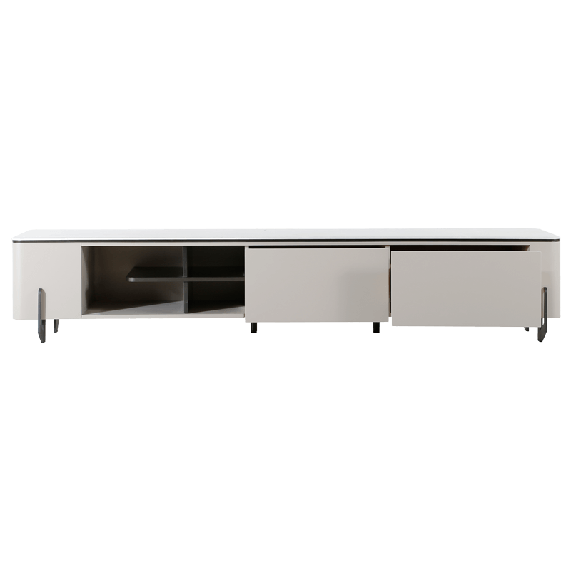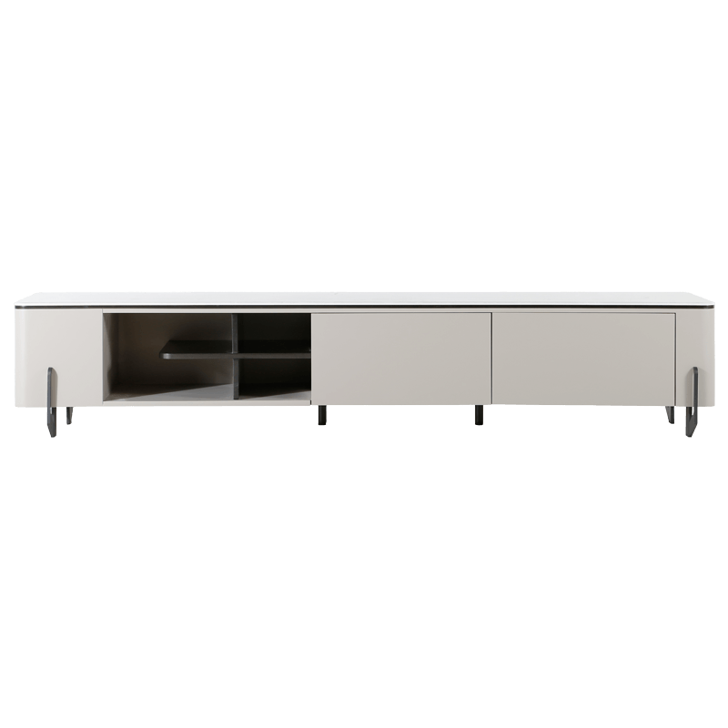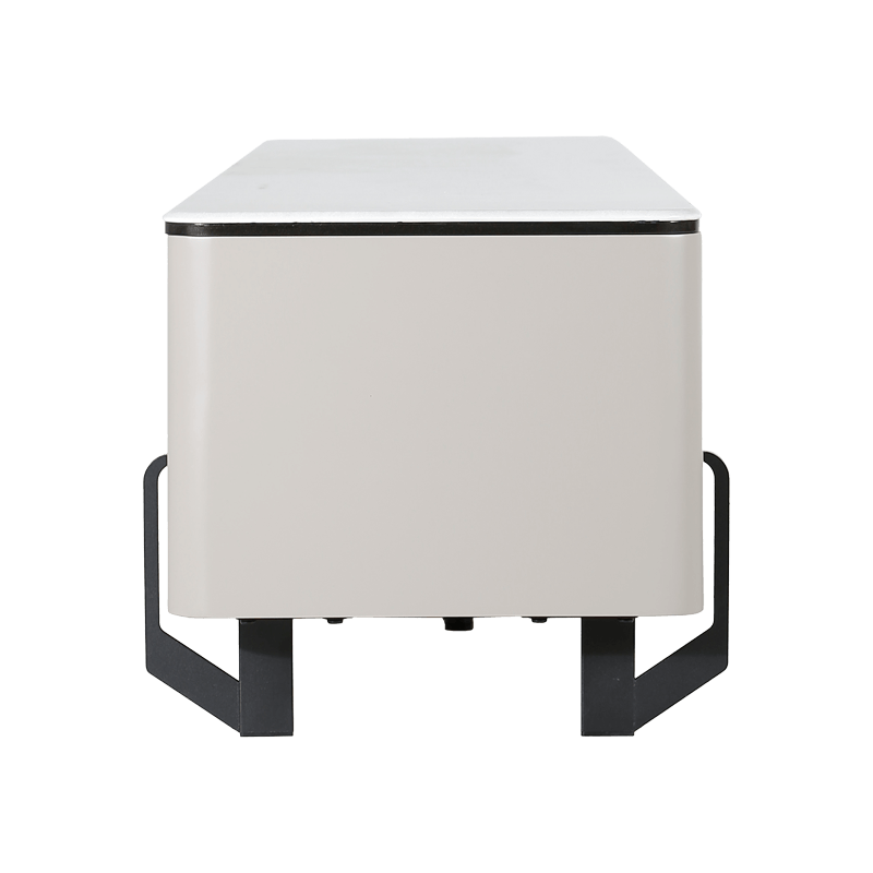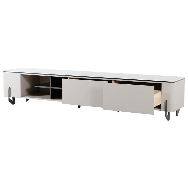 Минималистичен дизайн, изчистени линии и луксозно излъчване – ТВ шкаф DANA е създаден, за да придаде елегантен завършек на всяка модерна всекидневна. Плотът от керамика с дебелина 10 мм впечатлява със своята издръжливост и блясък, а стилната основа от МДФ подчертава съвременния характер на модела. Практичността не е пренебрегната – моделът предлага два чекмеджета с корпсус от борова дървесина и отворено пространство с интересна конфигурация от рафтове, идеални за съхранение на техника и аксесоари. Пълна информация за размерите и характеристиките на модела ще намерите в таблицата в таб/поле "Техническа информация".