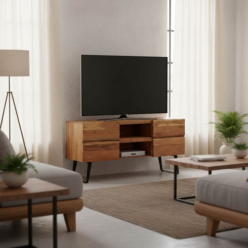 ТВ шкаф Dervie естествен масив акациево дърво 130x43.5x66.5cm