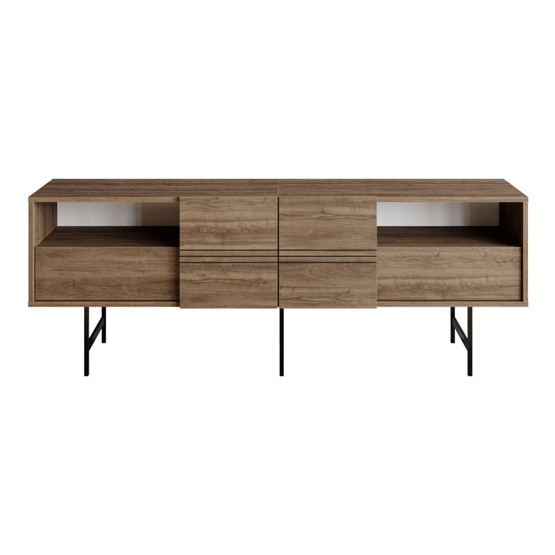 ТВ шкафът разполага с 4 шкафа и 2 рафта, които осигуряват достатъчно място за съхранение на медийни устройства, дистанционни, кабели и други аксесоари. Просторният дизайн го прави идеален за по-големи всекидневни.