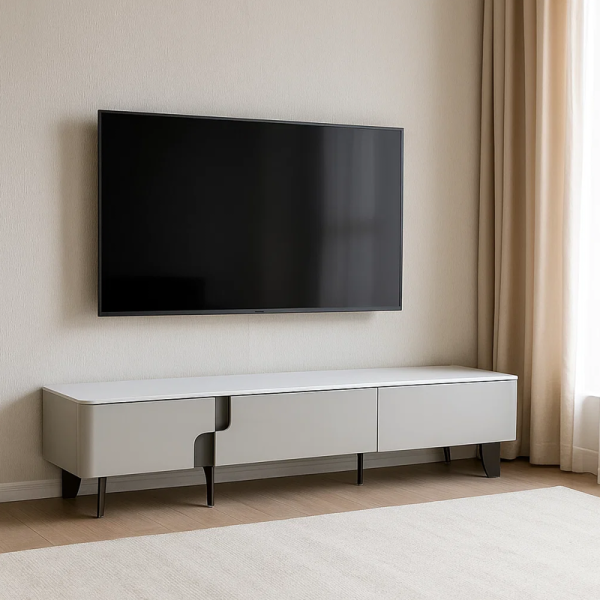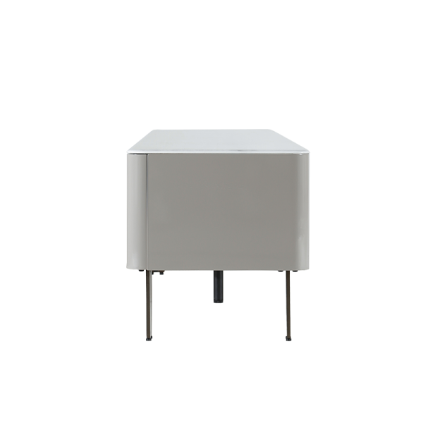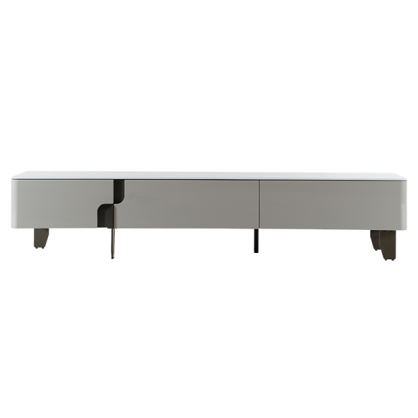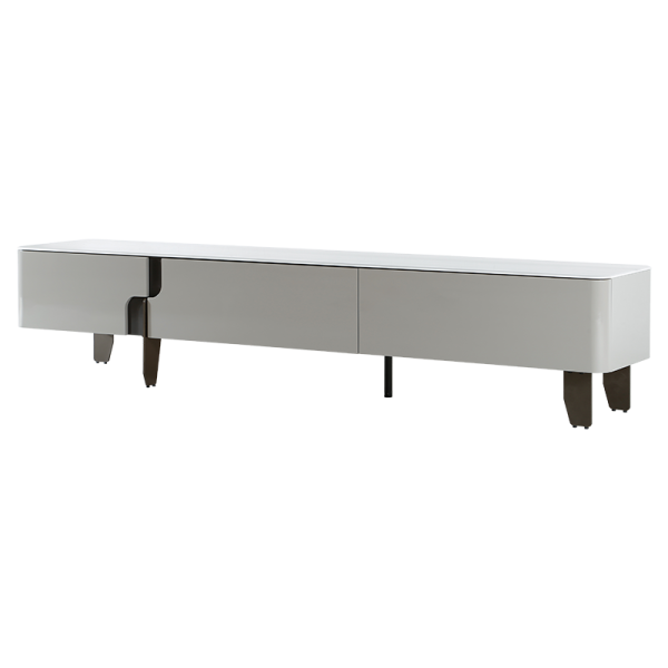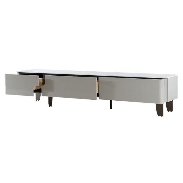 ТВ шкаф LONI впечатлява с изчистени линии и модерна визия в елегантен цвят. Плотът е изработен от висококачествена керамика с дебелина 8 мм, а основата е от МДФ. Моделът разполага с три плавно отварящи се чекмеджета, чиито корпуси са изработени от борова дървесина. Стилните крака от опушен поликарбонат придават лек и съвременен завършек на цялостния дизайн.