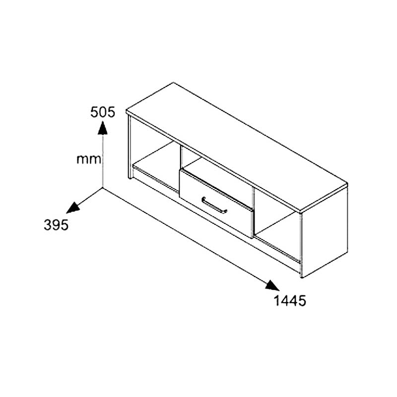 ТВ шкафът разполага с 2 чекмеджета и 2 рафта, които осигуряват достатъчно място за съхранение на медийни устройства, дистанционни, кабели и други аксесоари. Чекмеджетата са с плавно затваряне, а рафтовете позволяват лесен достъп до вашите устройства.