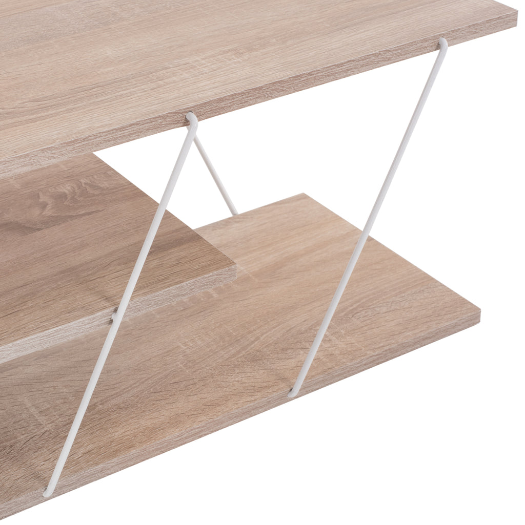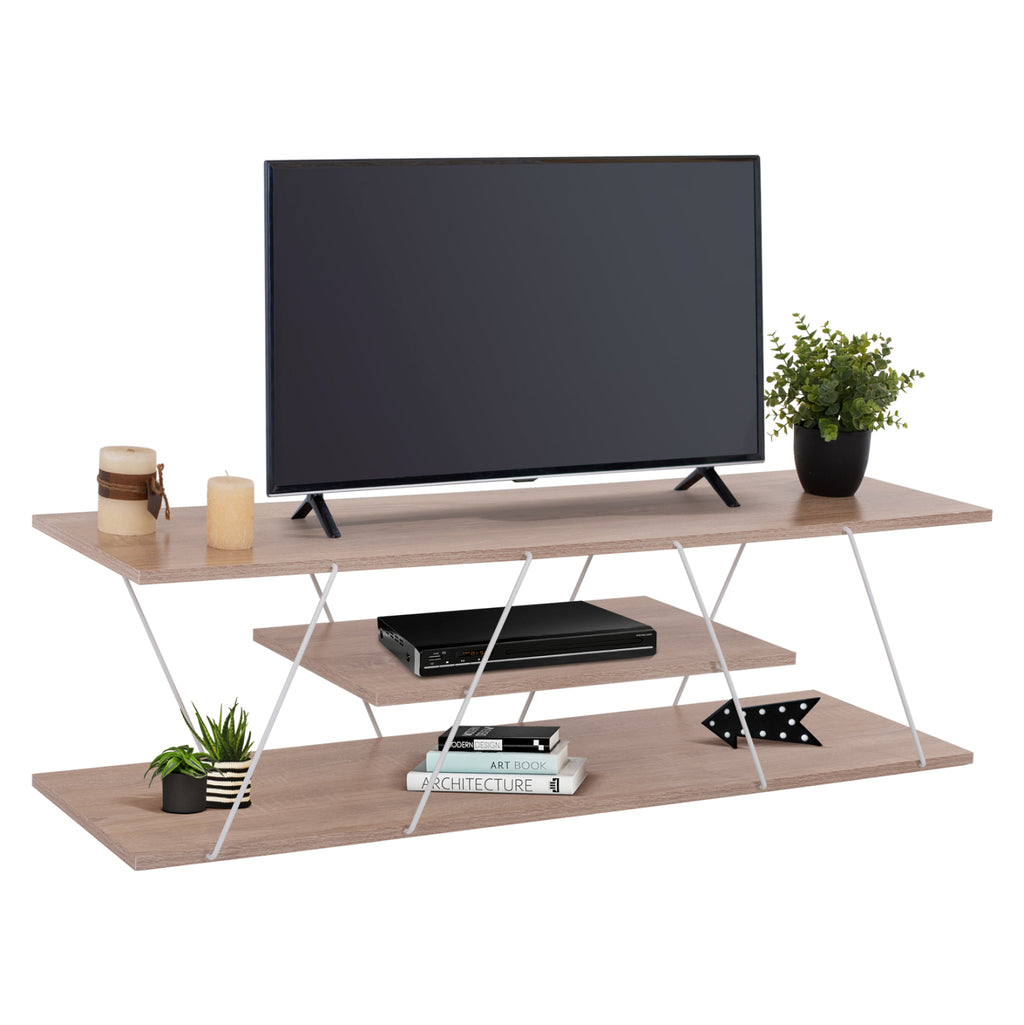 ΜΜ8922.14 ТВ шкаф----- TARS е красива мебел в цвят СОНОМА с модерен дизайн, която ще промени към по-добро облика на вашия хол или всекидневна. Това е продълговата конструкция от 3 нива (повърхности), които са свързани заедно с БЕЛИ метални пръти с различна геометрия, придаващи модерния щрих на тази стойка за телевизор. MH8922.14 може да се съчетае с много декоративни шарки в пространството благодарение на простия си стил. РАЗМЕРИ: 120X32X33H см. Долен рафт: 120х32 см. Среден рафт: 60x32 см. Горен рафт: 120х30 см. Размери на метала: Φ6mm КОНСТРУКТИВНИ МАТЕРИАЛИ: TARS е изработен от висококачествен меламин с дебелина 15mm. Меламинът е вид дървесина под формата на ПДЧ (панел). Като материал е много издръжлив и с голяма твърдост. Така че това е синтетичен материал с много твърда повърхност, което го прави много устойчив на драскотини, абразия и петна. Свързващите пръти на 2-те повърхности са метални с електростатично боядисване. ПОДДРЪЖКА: Меламинът, който е строителният материал, се почиства много лесно от петна благодарение на твърдата си повърхност. Можете да избършете всички повърхности с влажна кърпа и това е достатъчно. За упорити петна можете да използвате мек почистващ препарат. Продуктът се доставя без поръчка