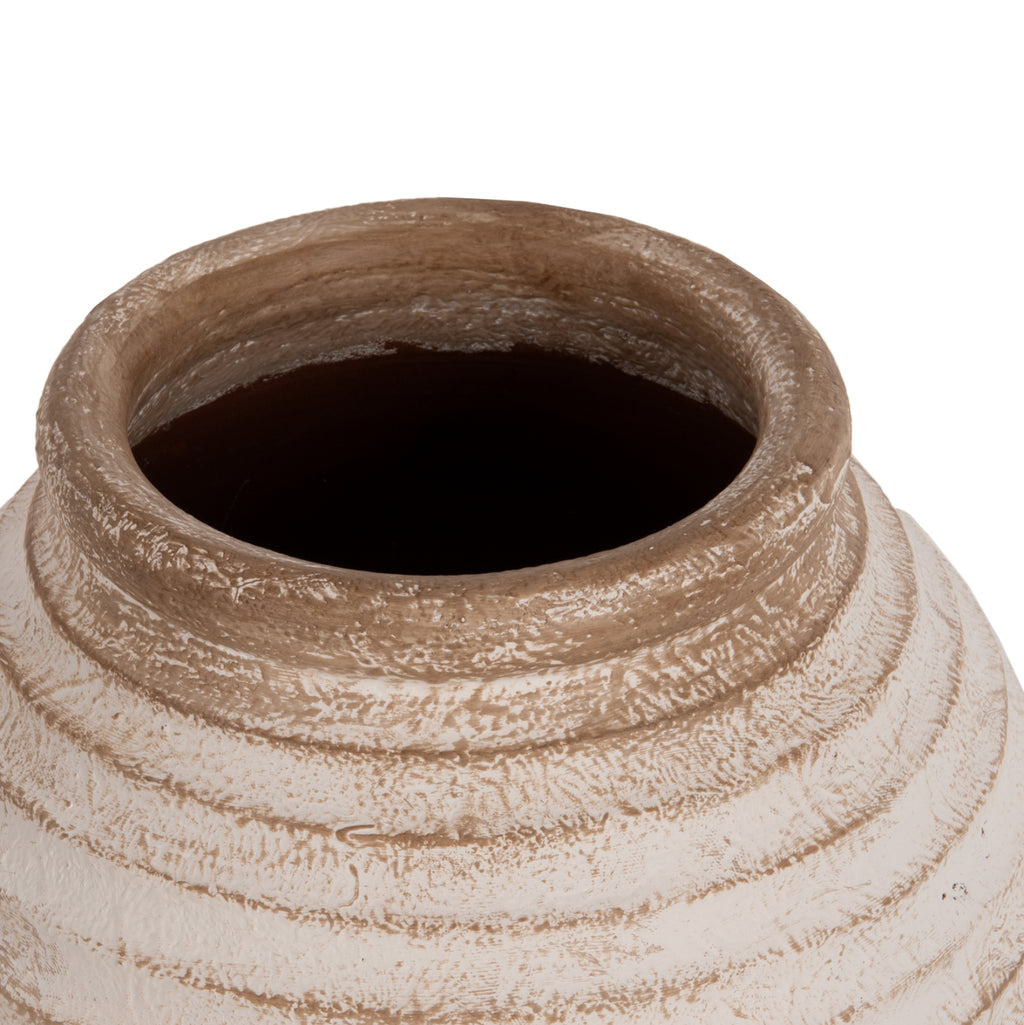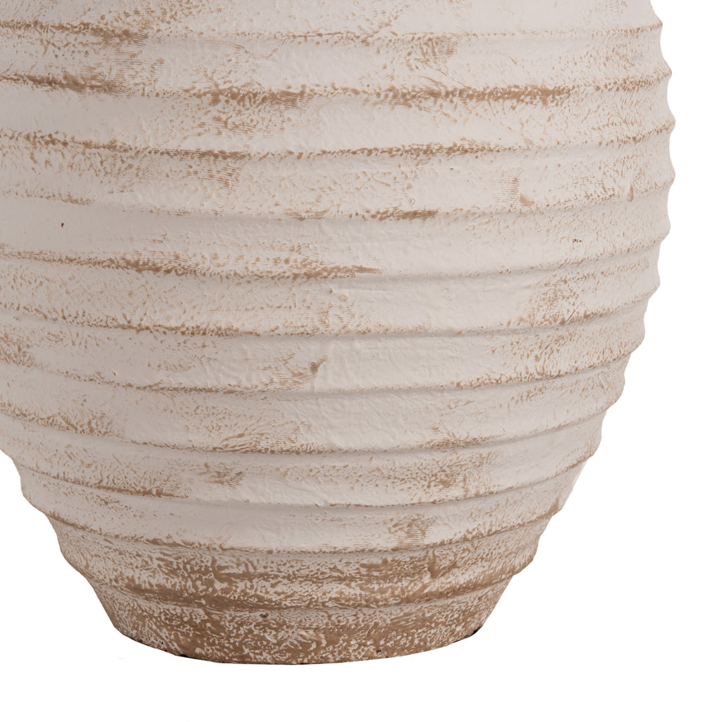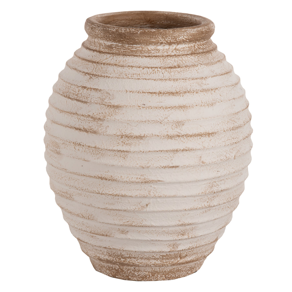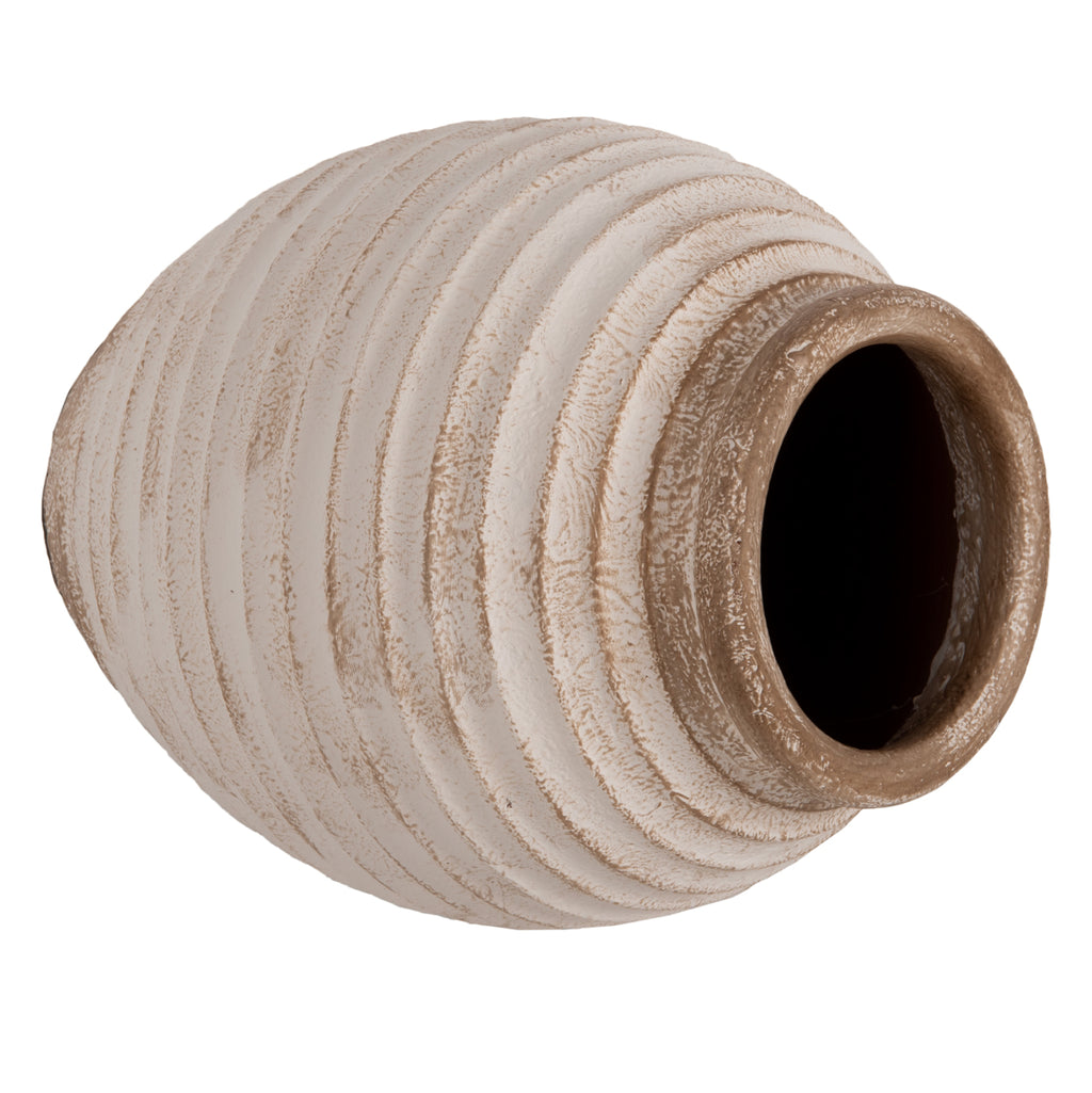 Декоративната подова ваза PYDNA е изработена с класически дизайн в ANTIQUE WHITE-BEIGE нюанс и може да се постави навсякъде, където пожелаете. Или у дома, или в бизнес помещения. РАЗМЕРИ: Φ28x35H см. Устие: Φ14 см. СТРОИТЕЛНИ МАТЕРИАЛИ: Строителният материал е теракот. Теракотата е керамичен материал. Името му идва от латински и означава "видима почва" (terra = почва, пръст и cotta = видима, изпечена). Затова, когато казваме, че нещо е направено от теракот, имаме предвид, че е направено от глина. ПОДДРЪЖКА: Едно почистване с прах обикновено е достатъчно. Ако искате, можете да го измиете с вода, но избягвайте използването на химически почистващи препарати.