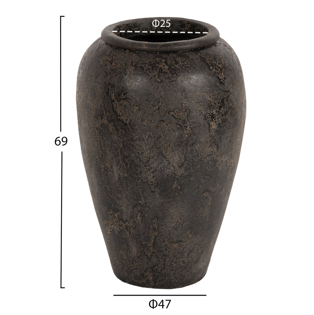 Декоративната ваза SPARTA е изработена с класически дизайн в ЧЕРЕН нюанс и може да се постави навсякъде, където пожелаете. Или у дома, или в бизнес помещения. РАЗМЕРИ: Φ47x69H см. Устие: Φ25 см. СТРОИТЕЛНИ МАТЕРИАЛИ: Строителният материал е теракот. Теракотата е керамичен материал. Името му идва от латински и означава "видима почва" (terra = почва, пръст и cotta = видима, изпечена). Затова, когато казваме, че нещо е направено от теракот, имаме предвид, че е направено от глина. ПОДДРЪЖКА: Едно почистване с прах обикновено е достатъчно. Ако искате, можете да го измиете с вода, но избягвайте използването на химически почистващи препарати.