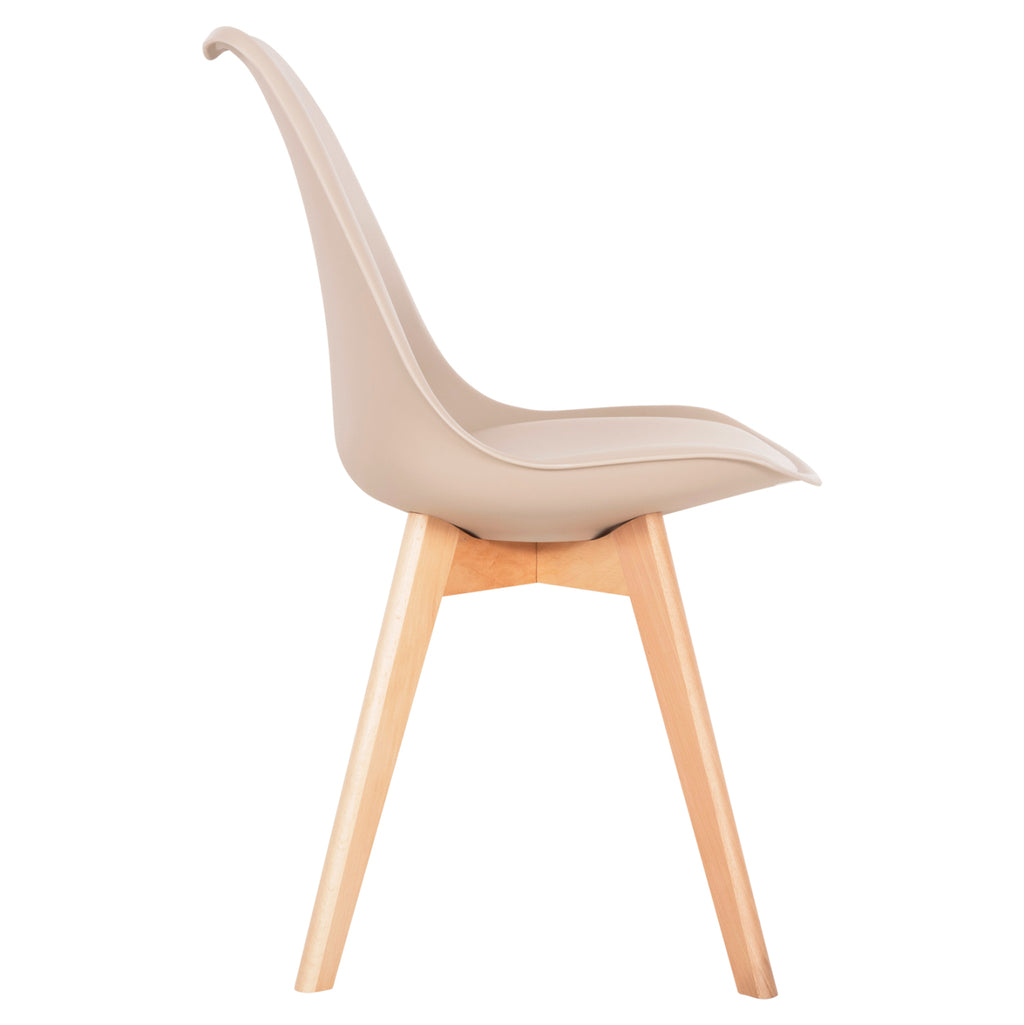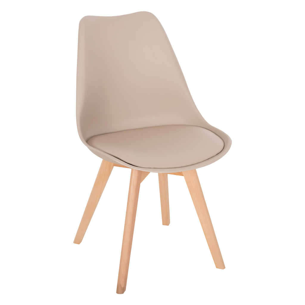 Седалката на стола и скелетът са едно цяло и правят стола изключително издръжлив. Скелет и крака: Масивно буково дърво в естествен цвят. Седалка: Висококачествен полипропилен с кожена PU възглавничка в капучино нюанс.