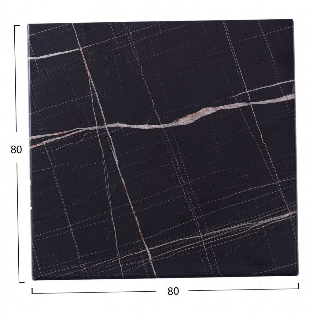 Плот Werzalit 80X80 в цвят черен мрамор с бели и бежови детайли. Оригиналните повърхности на маса от верзалит са известни със своята висока устойчивост. Те са идеални за оборудване на вашия интериор, както и за екстериора, тъй като техният строителен материал е идеален да издържа на влажност, вода, слънчева светлина и високи температури, които влизат в пряк контакт с повърхността му. Оборудвайте бизнес помещенията си умно, красиво и икономично и най-вече функционално, като си спестите грижите по поддръжката им. Предимства: 1) Устойчивост на надраскване. Устойчив на драскотини от вилици, ножове и др. 2) Не гори от цигара. Ако цигара падне върху повърхността, върху нея не остава следа от изгаряне. 3) Устойчивост на дъжд. Не се влияе от влага и дъжд. 4) Те издържат на излагане на слънце (с изключение на тъмните цветове върху големи повърхности)-- Те могат да показват леки извивки в "тялото" си след дълги часове излагане на слънце и високи температури. Въпреки това, те се връщат в първоначалното си състояние, когато се съхраняват при ниска температура. 5) Устойчивост до 180 C. Ако оставим горещ съд на повърхността, той не оставя следа върху него. 6) Нулева абсорбция. Не се променя при контакт с течност или твърд материал. 7) Много лесно почистване поради гладката повърхност. 8) Заоблени ъгли и ръбове за по-голяма безопасност. 9) Голямо разнообразие от размери и дизайни за покриване на всяка нужда. Дебелина на повърхността 20,5 мм, а окачването е 35 мм ВНИМАНИЕ* Подпорната основа на масата в идеалния случай трябва да покрива 70% от повърхността. Важна забележка Преди да монтирате винтовете, трябва да проверите размера им, за да избегнете повреда на повърхността. (Ако са монтирани грешни винтове, повърхността ще се повреди, тъй като винтовете проникнат в нея. За да избегнете повреда на продукта, ви препоръчваме да проверите размера на винта, преди да бъде монтиран на повърхността, дори ако винтовете са от нашата компания или ги купувате от търговската мрежа.)