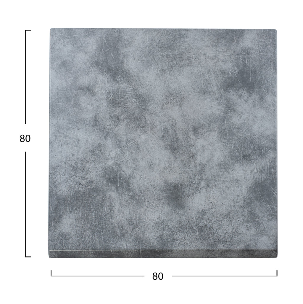 Плот за маса, Werzalit, в цвят цимент. Размери: 80х80см. Дебелина на повърхността: 3,5см. Оригиналните плотове за маса Werzalit са известни със своята висока издръжливост. Те са идеални за вашето вътрешно и външно оборудване, тъй като техният строителен материал е идеален да издържа на влага, вода, слънчева светлина и високи температури, които влизат в пряк контакт с повърхността му. Оборудвайте бизнес помещенията си умно, красиво и икономично и най-вече функционално, като си спестите грижите по поддръжката им. Предимства: 1) Устойчивост на надраскване. Устойчив на драскотини от вилици, ножове и др. 2) Не гори от цигара. Ако цигара падне върху повърхността, върху нея не остава следа от изгаряне. 3) Устойчивост на дъжд. Не се влияе от влага и дъжд. 4) Те издържат на излагане на слънце (с изключение на тъмните цветове върху големи повърхности)-- Те могат да показват леки извивки в "тялото" си след дълги часове излагане на слънце и високи температури. Въпреки това, те се връщат в първоначалното си състояние, когато се съхраняват при ниска температура. 5) Устойчивост до 180 C. Ако оставим горещ съд на повърхността, той не оставя следа върху него. 6) Нулева абсорбция. Не се променя при контакт с течност или твърд материал. 7) Много лесно почистване поради гладката повърхност. 8) Заоблени ъгли и ръбове за по-голяма безопасност. 9) Голямо разнообразие от размери и дизайни за покриване на всяка нужда. ВНИМАНИЕ* Подпорната основа на масата в идеалния случай трябва да покрива 70% от повърхността. Важна забележка Преди да монтирате винтовете, трябва да проверите размера им, за да избегнете повреда на повърхността. (Ако са монтирани грешни винтове, повърхността ще се повреди, тъй като винтовете проникнат в нея. За да избегнете повреда на продукта, ви препоръчваме да проверите размера на винта, преди да бъде монтиран на повърхността, дори ако винтовете са от нашата компания или ги купувате от търговската мрежа.)