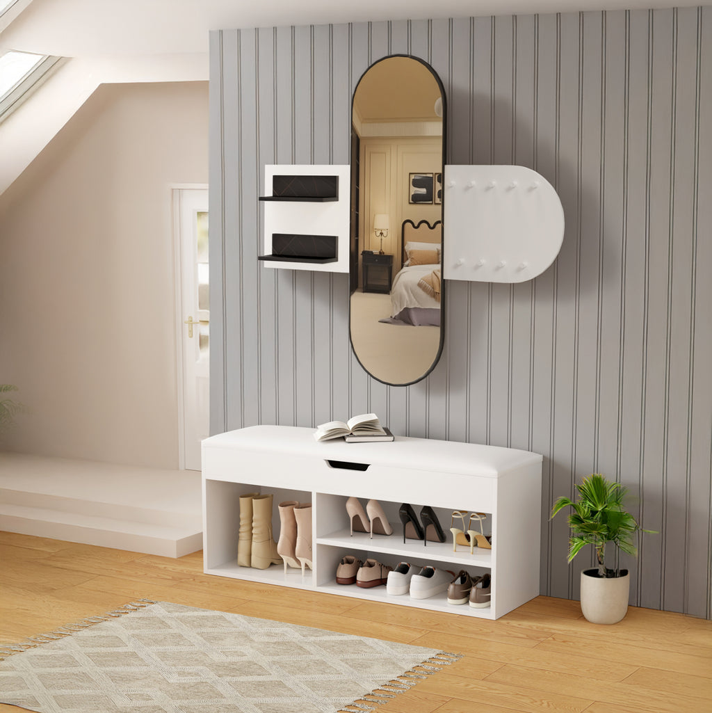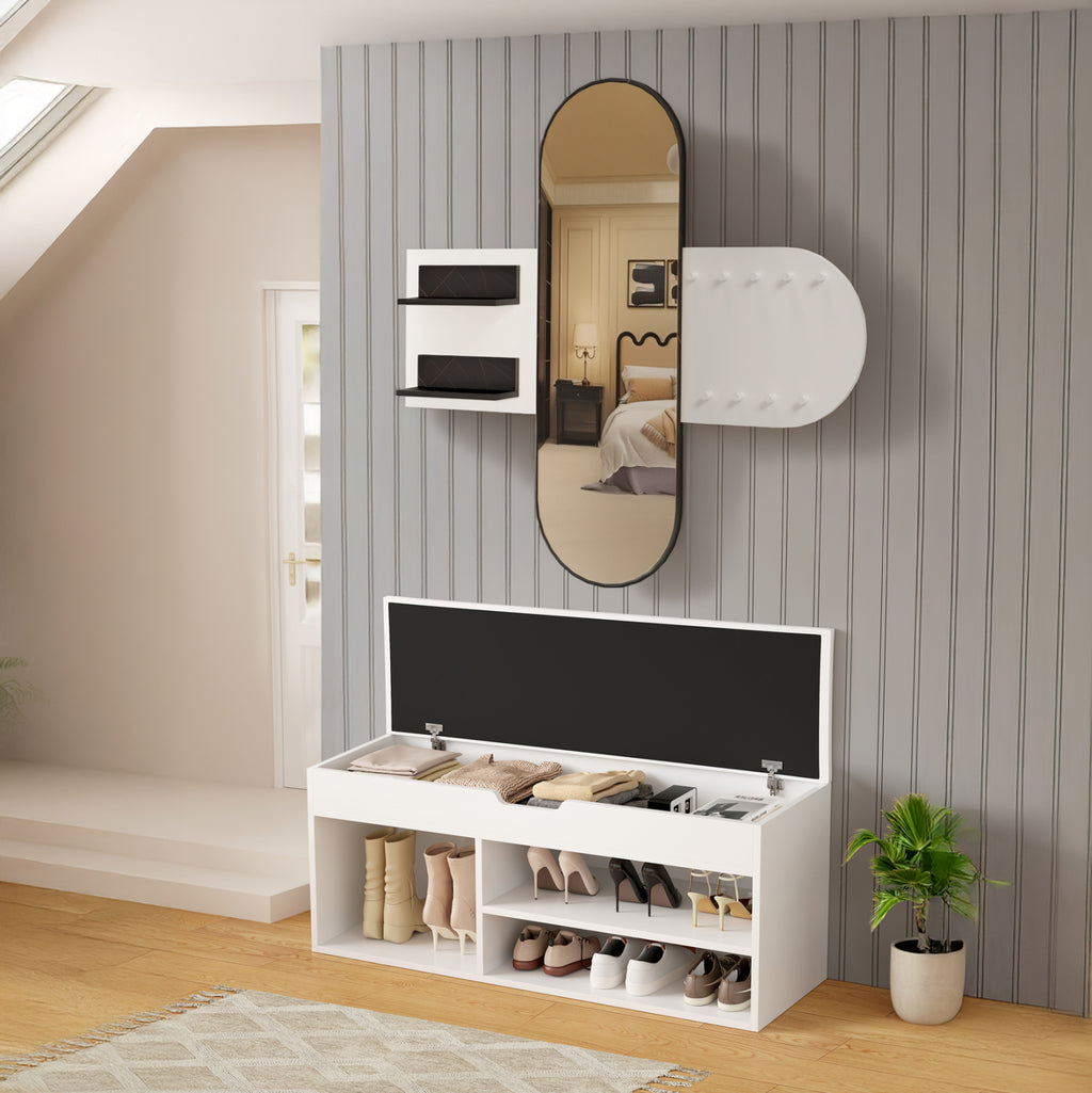 Входен комплект с огледало и поставка за обувки – стил, удобство и функционалност