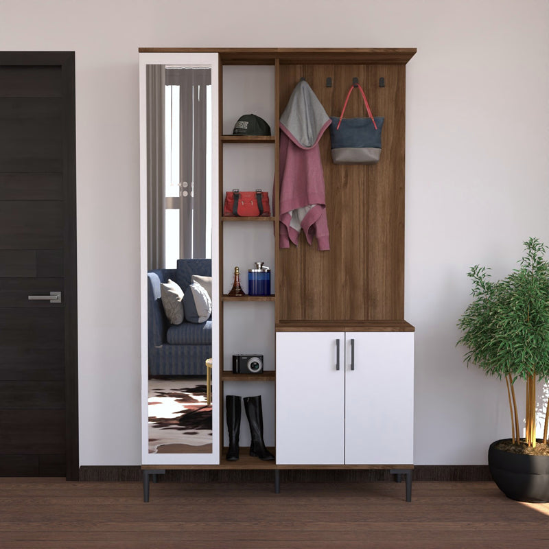 Входен Модул Melena с Огледало-Закачалка - Бяло-Орех