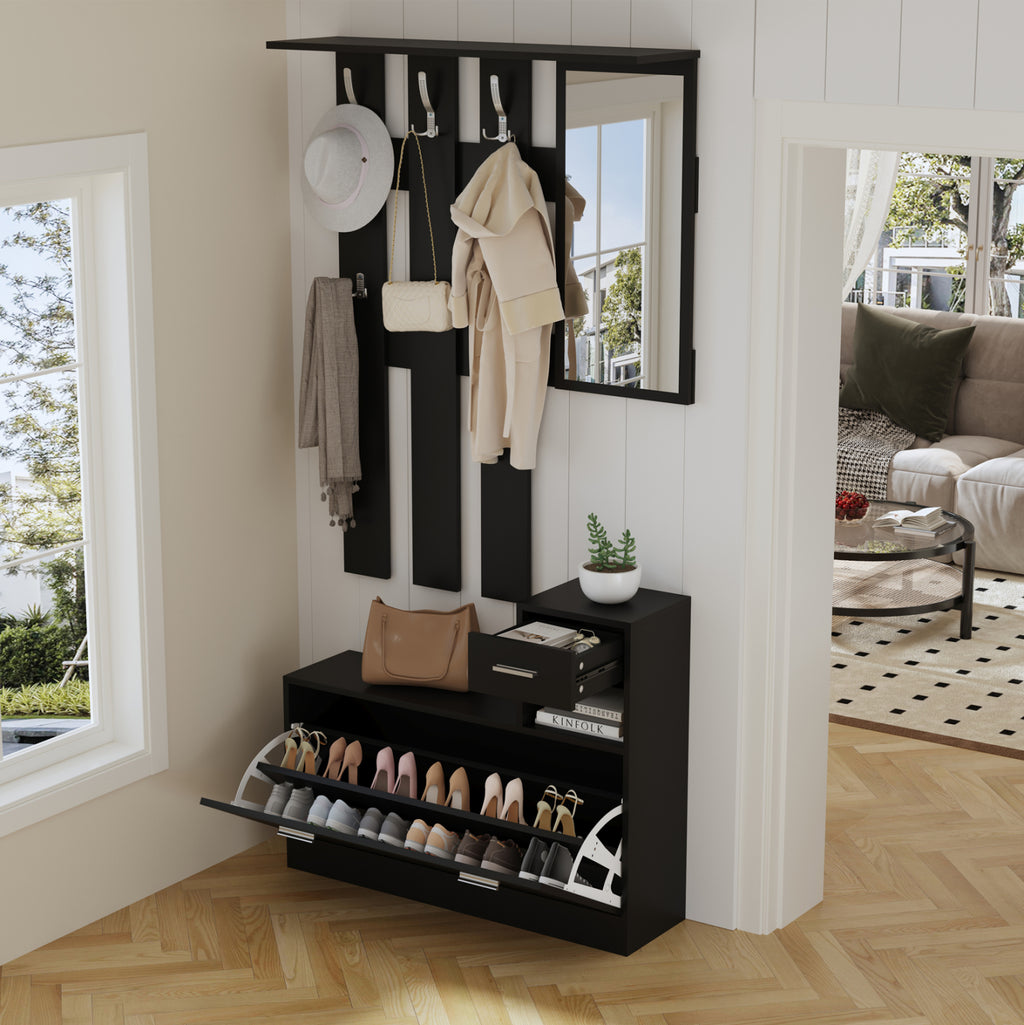 Антрето GORN е внимателно проектирано, за да осигури максимално удобство и ефективно използване на пространството. Комплектът се състои от шкаф за обувки с две врати, отворено отделение за бърз достъп и практично чекмедже за дребни вещи като ключове, документи или аксесоари.