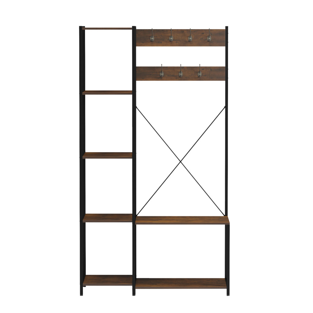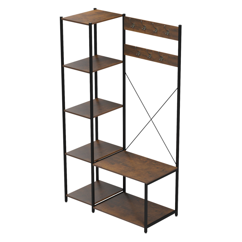 Входните подови мебели в стил отворен гардероб ARANJA са високи и съчетават практичност и индустриален стил. Разполага с 4 квадратни рафта от едната страна (+1 на тавана), а от другата има закачалка със 7 двойни кукички, и 2 рафта отдолу за обувки.