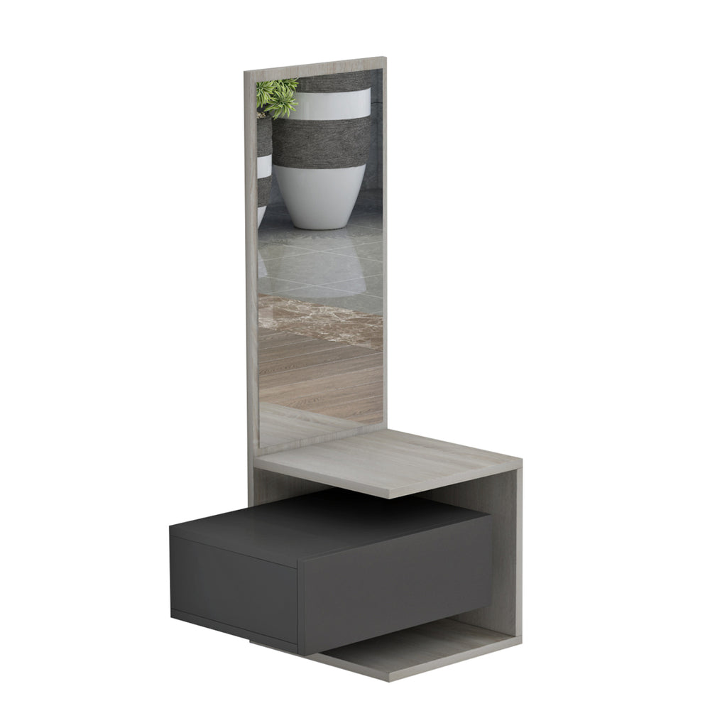 Входната мебел MEARA е модерно и семпло предложение, което ще ви помогне да създадете добре организирано и подредено пространство на входа на вашия дом. Разполага с огледало, отворени пространства за поставяне на предмети и чекмедже, в красив двуцветен цвят SONAMA-GREY. РАЗМЕРИ: 49.1x31.3x90H см. МАТЕРИАЛИ НА ИЗРАБОТКА: Входната гарнитура е изработена от меламин с дебелина 15мм. Меламинът е вид дървесина под формата на ПДЧ (панел). Като материал е много издръжлив и с голяма твърдост. Така че това е синтетичен материал с много твърда повърхност, което го прави много устойчив на драскотини, абразия и петна. ПОДДРЪЖКА: Меламинът се почиства много лесно от петна благодарение на твърдата си повърхност. Можете да избършете всички повърхности с влажна кърпа и това е достатъчно. За упорити петна можете да използвате мек почистващ препарат. *Продуктът се доставя несглобен във фабрична опаковка ** Цветопредаването на продукта може леко да се различава от фотографското изображение на вашия екран.