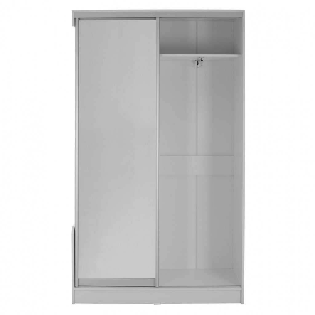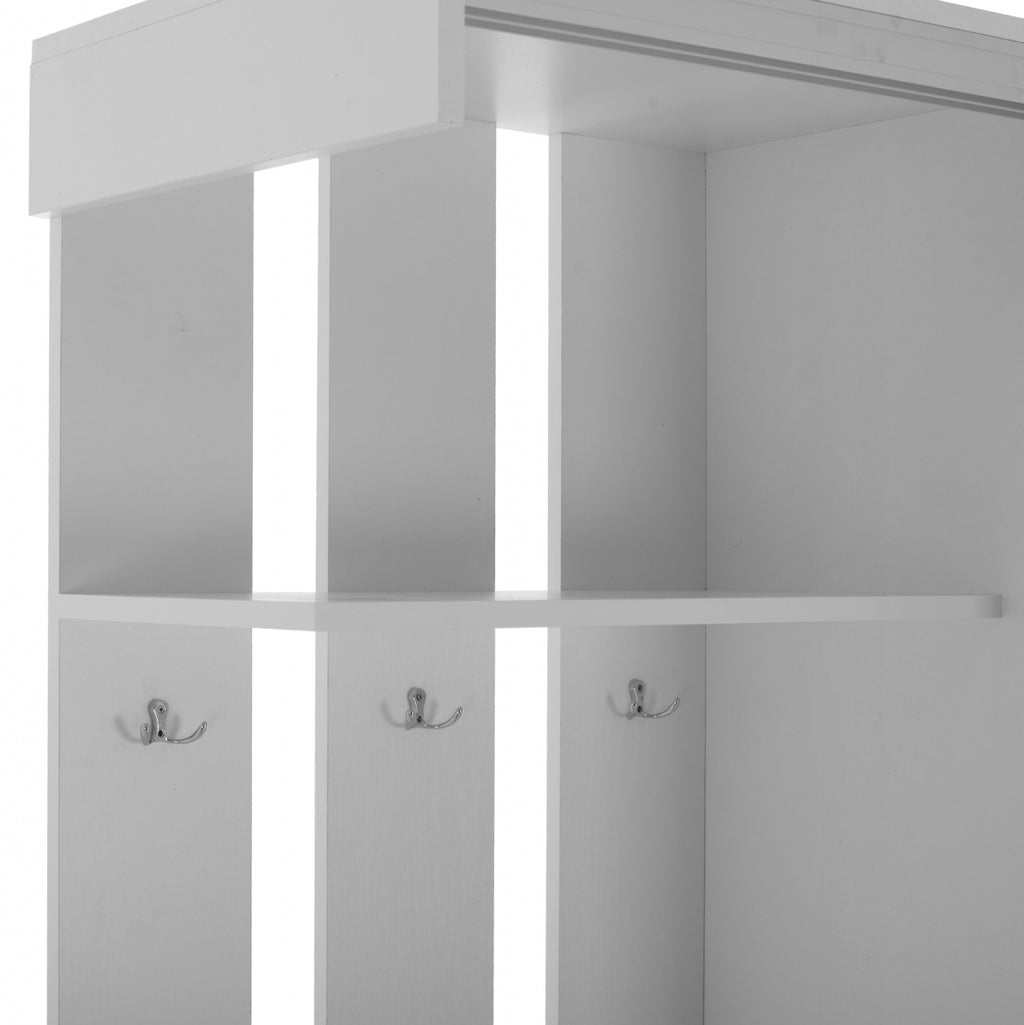 Мебел за антре с огледало в бял нюанс 118х45х210см. Мебелна композиция, която съчетава от дясната страна гардероб с плъзгащ се гардероб с голямо огледало отвън, а от вътрешната страна има 1 рафт в горната част и вертикално плъзгаща се навън щанга за окачване, която улеснява окачването на дрехите. От лявата страна има рафт за съхранение в горната част, място за закачалки и 4 рафта за съхранение на дребни предмети в долната част. Гъвкав и практичен, той е най-доброто предложение за декорация и организация в приемната на вашия дом. Изработен от висококачествен 18 мм меламин с устойчивост на натоварване и износване. Размери: 118х45х210см. Горен рафт: 57x30x35 см. Отворена повърхност: 58x38 см. Рафтове 1+2: 27x40x19 см. Рафтове 3+4: 27x40x21 см. Дясна страна: 57x48x30 см. Европейско производство и произход. Продуктът се предлага разглобен във фабрична опаковка.