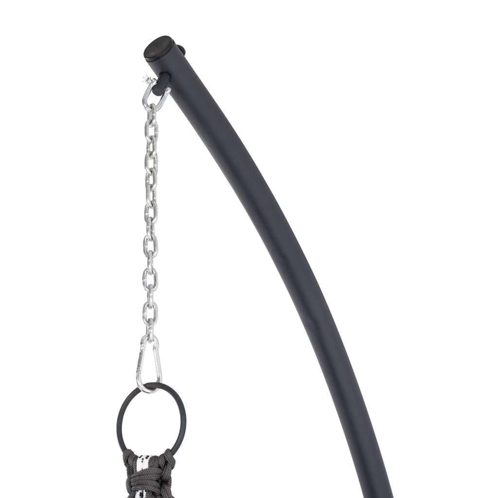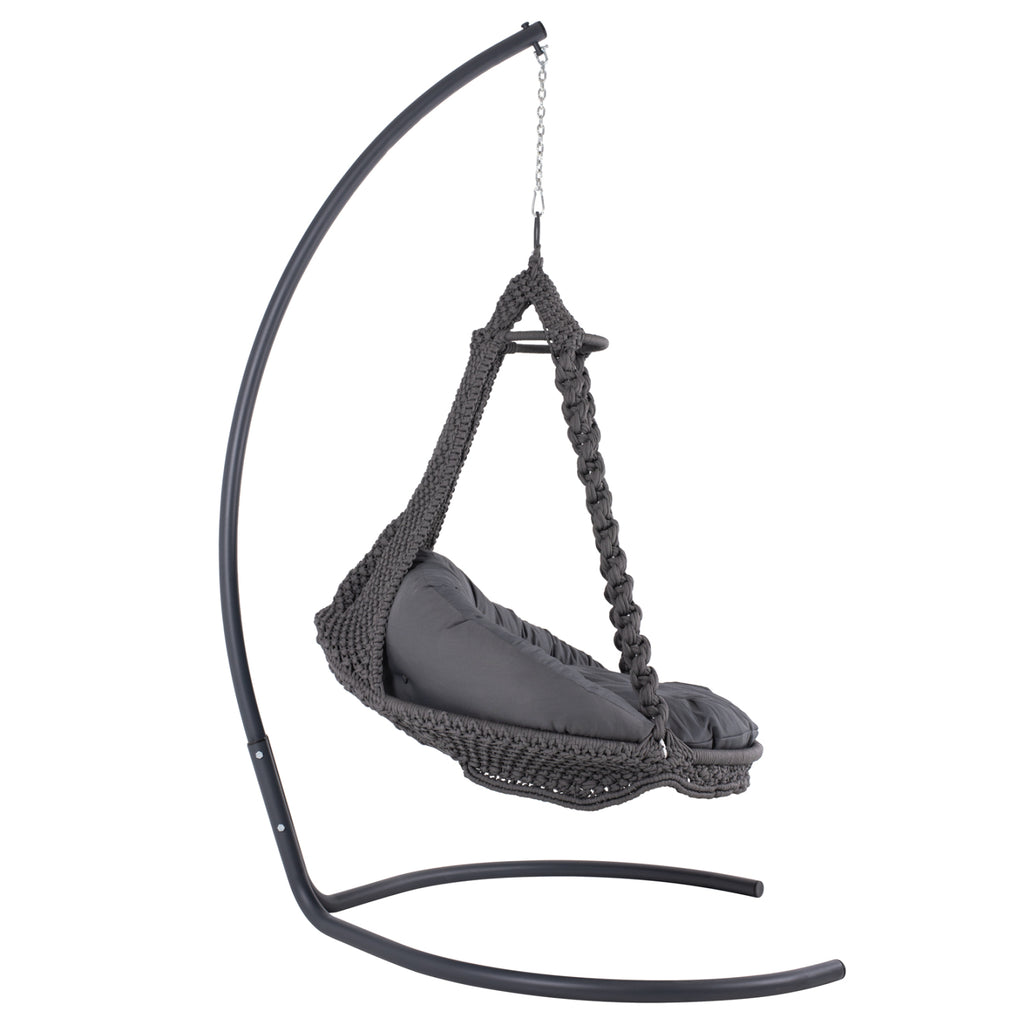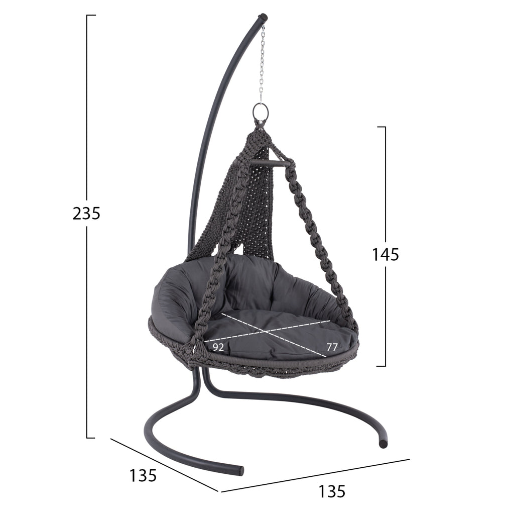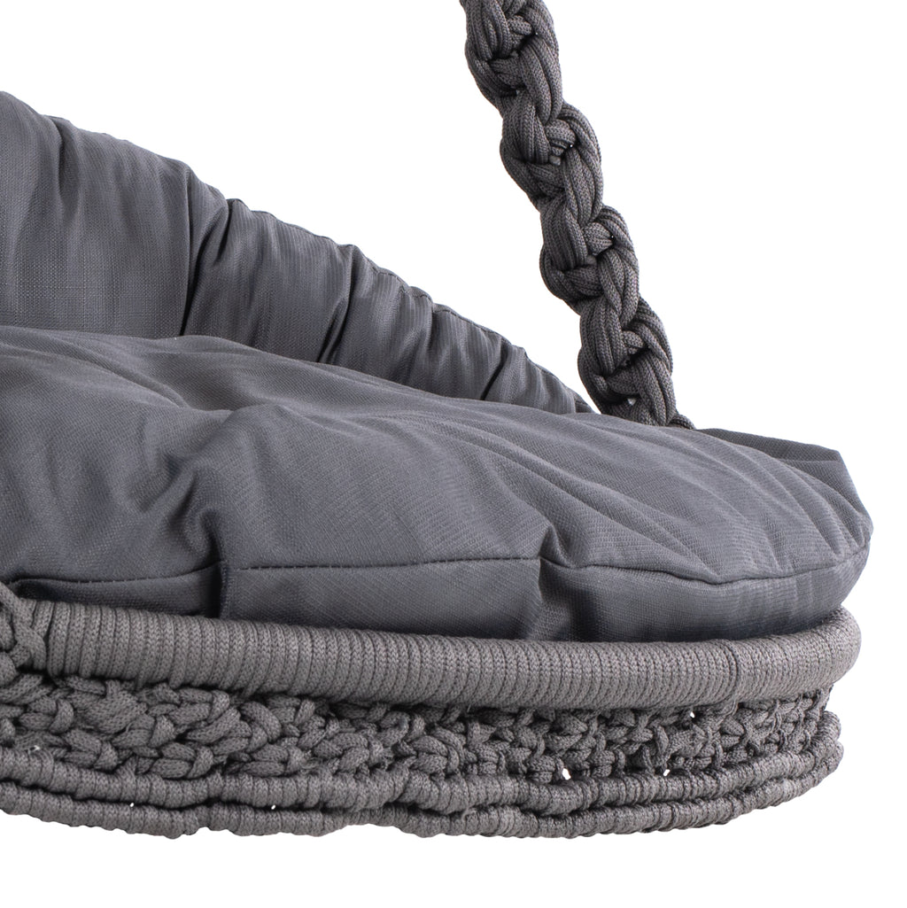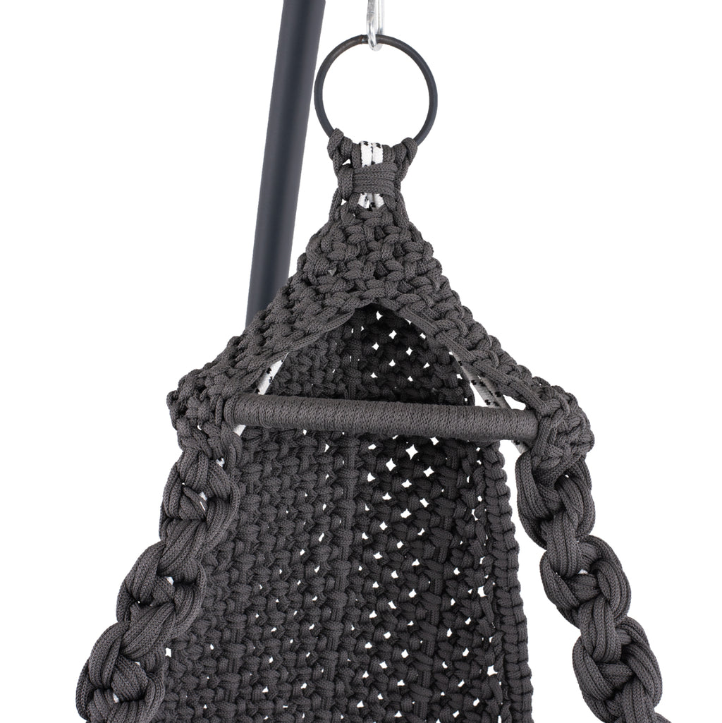 Висящото гнездо August съчетава бохемския чар на макрамето с модерната елегантност на металната рамка в цвят въглен. Тъмният цвят на конструкцията създава стилен контраст с естественото макраме, правейки гнездото подходящо за различни градински стилове - от модерни до бохемски, от минималистични до eklektични.