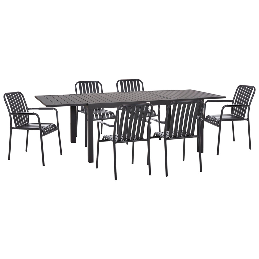 Алуминиев разтегателен комплект за хранене на открито с 6 фотьойла – тъмно сиво съвършенство за вашата градина