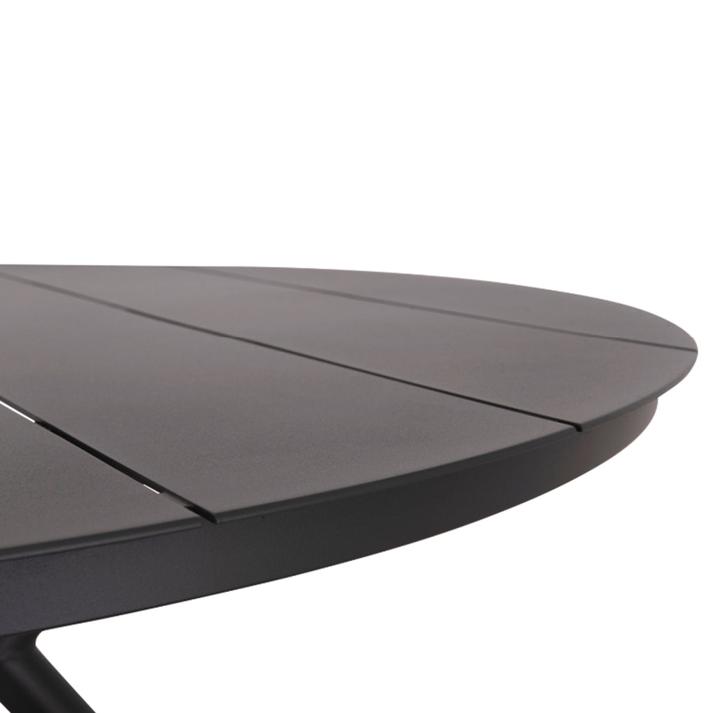 Кръглата маса с диаметър 126 см и височина 74 см осигурява достатъчно пространство за четирима души и е с изключително здрава и лека конструкция. Алуминият, използван за изработка, е 100% рециклируем и екологичен материал с дълъг живот, което прави комплекта не само практичен, но и устойчив избор.