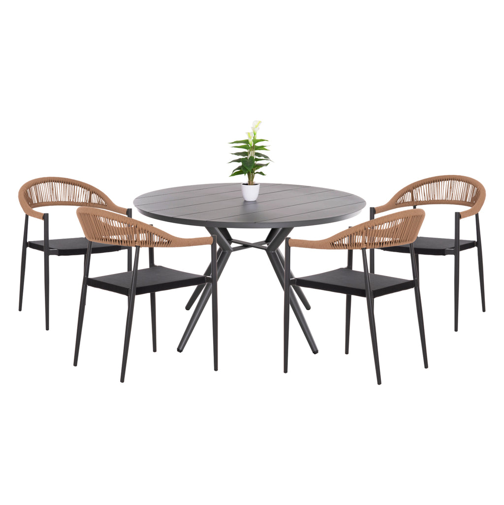 Алуминиев градински комплект с кръгла маса и 4 фотьойла – стилно решение за хранене на открито