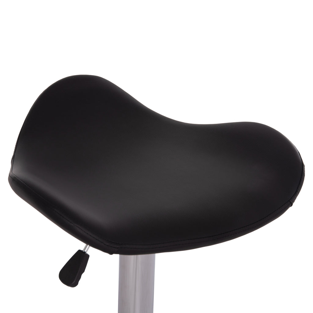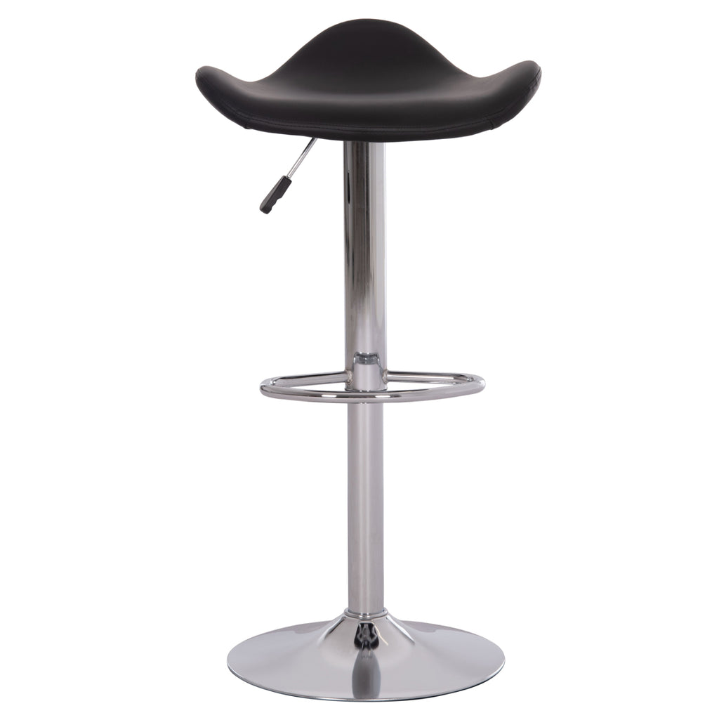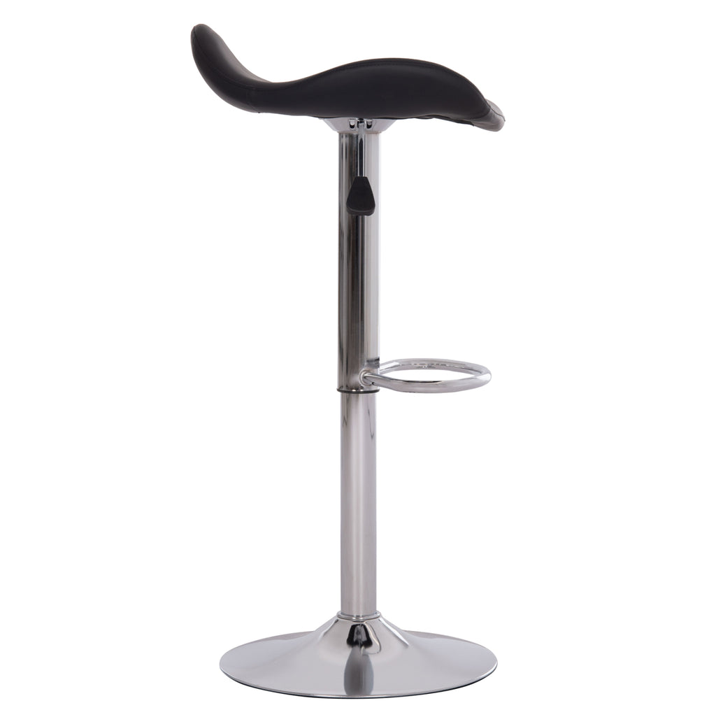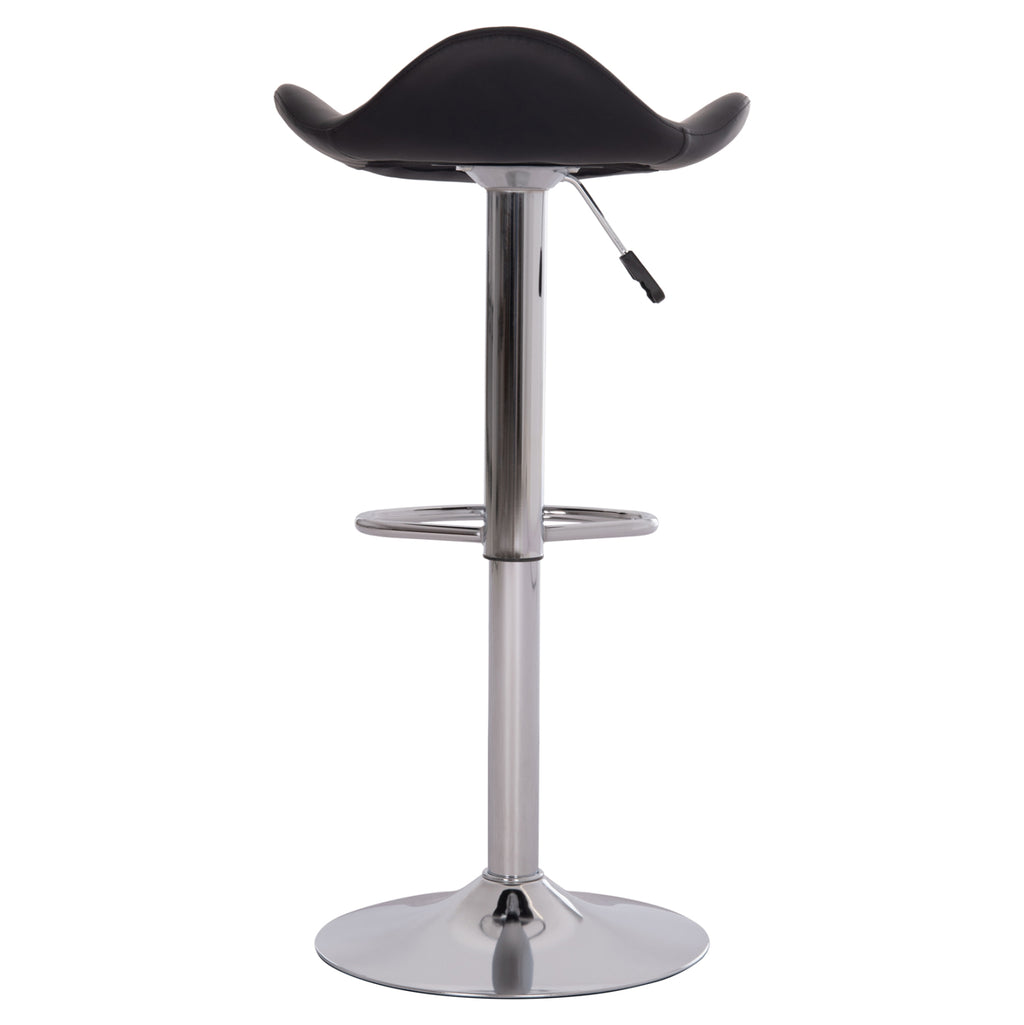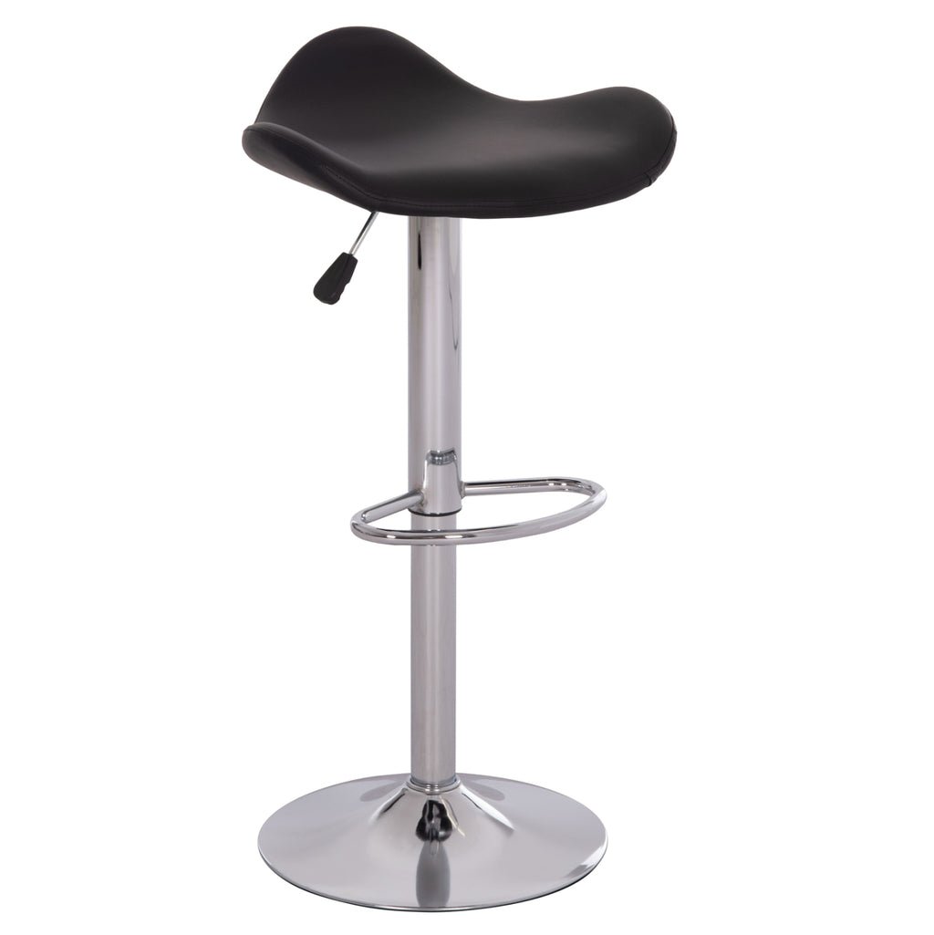 GANNA е бар стол с анатомична седалка, тапицирана с ЧЕРНА PU. Той е въртящ се и висок, без облегалка. Хромираната метална колона на стола е с полукръгла поставка за крака, завършваща с красив широк диск, осигуряващ опора и баланс. Специалната характеристика е наличието на амортисьор за регулиране на височината на седалката, което се извършва с елегантен лост под седалката.