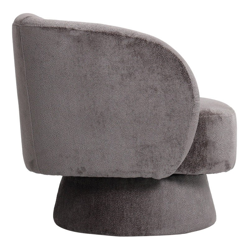 Уникалната комбинация от извити линии и модерна, но същевременно винтидж нотка предлага усещане за лукс и комфорт, създавайки атмосфера на релакс. Идеален за всекидневната или спалнята, този фотьойл ще се превърне в център на всяко пространство и ще добави нотка елегантност към ежедневието ви. Технически характеристики: Рамка от подсилен шперплат, борова дървесина и висококачествен метал. Облегалката и седалката са вътрешно подплатени с високоеластична пяна за издръжливост и устойчивост на износване. Въртяща се функция за допълнително удобство. Тапициран с първокласна материя букле. Предлага се в цвят антрацит. Размери на продукта: Дължина: 78 см Ширина: 81 см Височина: 77 см Височина на седалката: 46 см Дълбочина на седалката: 54 см Капацитет на тегло: 120 кг Информация за материала: Шперплат: Композитен материал, който наподобява дърво, изработен от рециклирана пластмаса. Обикновено се използва за външни мебели като маси, столове, шезлонги и пейки поради изключителната си устойчивост на атмосферни влияния. Борово дърво: Иглолистна дървесина, получена от иглолистни дървета от рода Pinus. Лек и лесен за работа, той е идеален за различни приложения. Неговите характерни зърна и естествени възли му придават топла и органична естетика. Метал: широко използван в производството на мебели, металът предлага няколко предимства пред други материали. Той е изключително устойчив на износване и идеален за ежедневна употреба в среда с високи изисквания. Поддържа формата и структурата си изключително добре, осигурявайки стабилност и дълготрайност. Освен това някои метали имат специални свойства като антимикробно действие (мед) или свръхпроводимост (молибден). Тъкан: универсален материал, създаден чрез тъкане, плетене, шевове или свързване на влакна. Тези влакна могат да бъдат естествени (като памук, вълна или коприна) или синтетични (като полиестер или найлон). Процесът на тъкане създава мрежа, която определя характеристиките на тъканта, включително издръжливост, мекота, дишане и еластичност. Има голямо разнообразие от тъкани, всяка с уникални свойства и приложения. Поддръжка на материала: Шперплат: Отстранете праха и отломките с помощта на мека кърпа или четка. За по-добри резултати може да се използва и прахосмукачка с приставка с мека четка. За дълбоко почистване използвайте мека кърпа, навлажнена с вода и мек препарат или сапун. Ако шперплатът се използва на открито или в зони с висока влажност, нанесете подходящо покритие или защитно покритие, за да предотвратите повреда. Борово дърво: Използвайте мека, леко влажна кърпа, за да отстраните праха от повърхността. Ако е необходимо, нанесете мек почистващ препарат. Редовното прилагане на естествени масла за дърво ще помогне за защита на повърхността от износване, като същевременно ще подобри нейната естествена красота. Метал: За вътрешните метални мебели редовното почистване на прах или избърсване с влажна кърпа е най-добрият начин да се поддържа състоянието им. Тъкан: Поддръжката на плата зависи от различни фактори, включително тип влакно, конструкция на плата и употреба. Използвайте мек перилен препарат, подходящ за вида тъкан. Избягвайте белина или силни химикали, които могат да повредят влакната. Допълнителна информация: Продуктът се доставя несглобен във фабрична опаковка с подробно рък