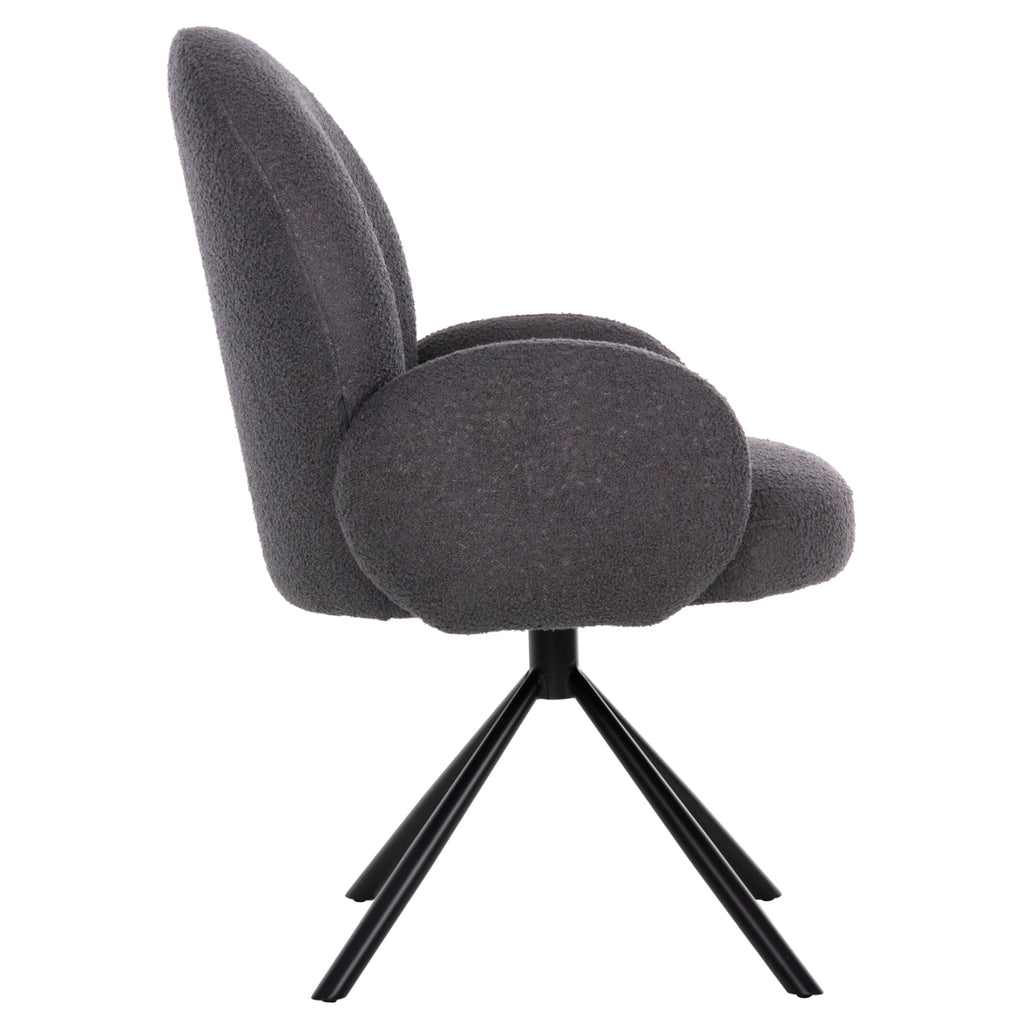 Представяме ви въртящото се кресло WINON в ТЪМНО СИВ цвят, което е едно от новите попълнения в нашата гама. Той лежи върху черна метална основа с четири зъба, върху която е монтиран шарнирният щифт. Тапицерията на фотьойла е изработена от висококачествена дамаска TEDDY, а седалката е удобна, отговаряща на характера на креслото, което е модерно съчетаващо стил и комфорт. Особеността му е, че се завърта на 180 градуса, а не напълно, и има автоматично връщане в първоначалната си позиция. РАЗМЕРИ: Размери: 65х67х92см. Височина на ръцете: 60см. Височина на седалката: 50см. Размери на седалката: 38х48 см. Размери на гърба: 52х45см. Размери на ръката: 14x40x26 см. Височина на крака с основата: 39 см. Разстояние между краката: 40х40 см. Разстояние задни крака: 40см. МАТЕРИАЛИ НА ИЗРАБОТКА: "Пълнежите" на фотьойла, както на облегалката, така и на седалката, са изработени от дунапрен със средна твърдост, който предлага голям комфорт и по-добра опора на тялото. Цялата подплата е изработена от висококачествена материя ТЕДИ. Платът Теди често се прави от различни тъкани. В наши дни преобладава синтетичното теди, т.е. изработено от полиестер в комбинация с акрил. И след това се боядисва в желания цвят. Тази материя може да се опише като мека, пухкава, еластична и има вид на овца. Освен това е издръжлив, топъл и може да абсорбира влагата. ПОДДРЪЖКА: В повечето случаи платът на Теди може просто да се почисти с прахосмукачка. ** Цветопредаването на продукта може леко да се различава от неговото фотографско представяне на вашия екран. Продуктът се доставя разглобен във фабрична опаковка