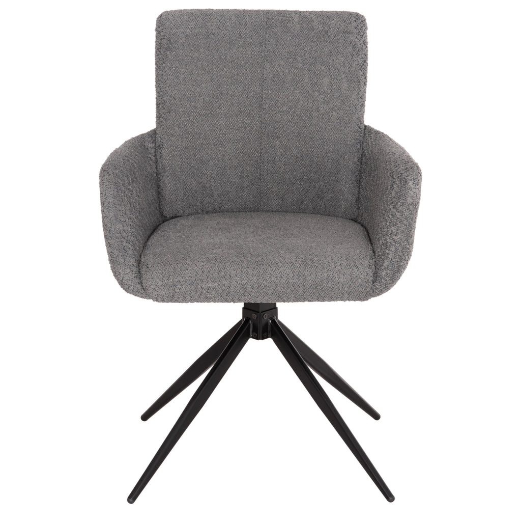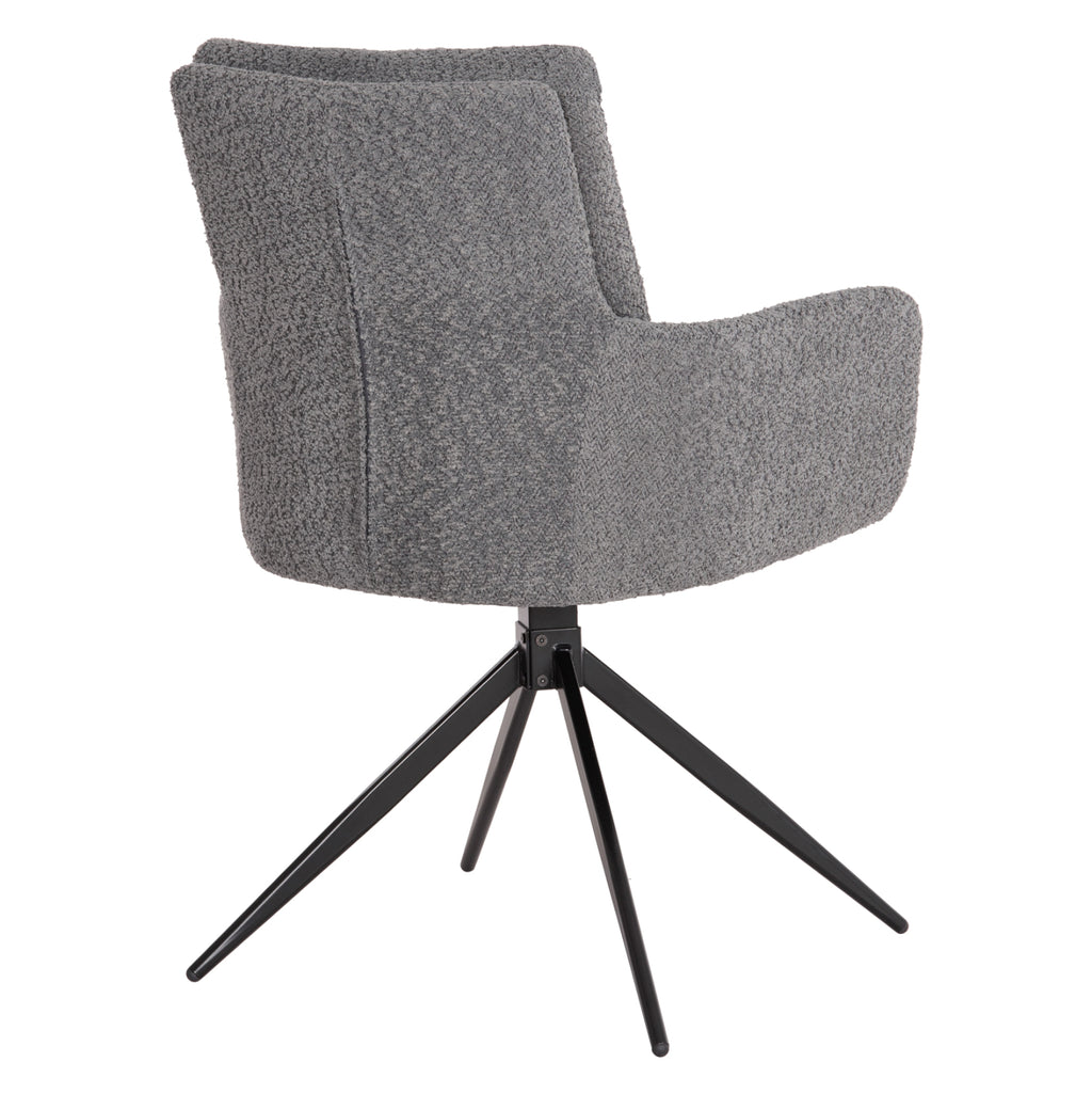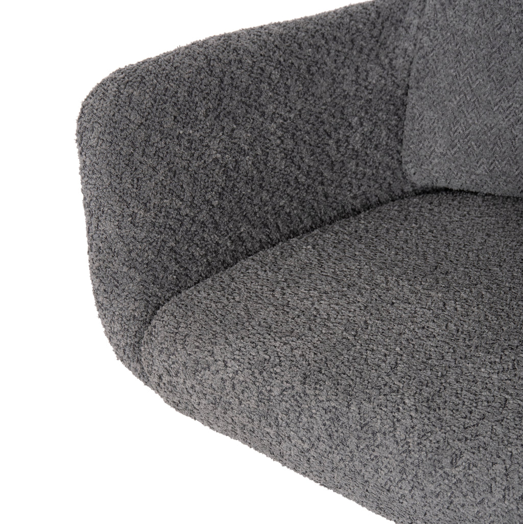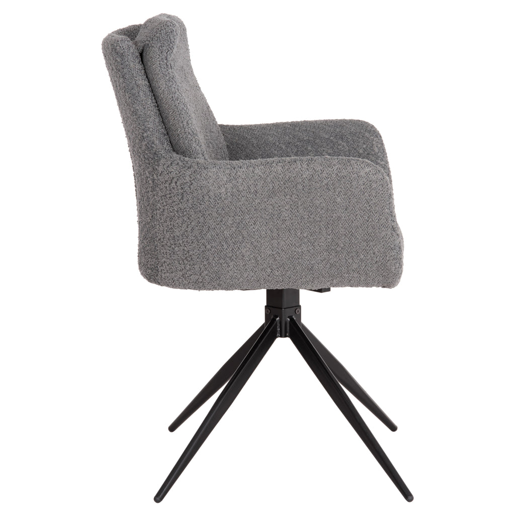 BLANS е въртящо се трапезарно кресло в СИВ цвят и е едно от новите попълнения в нашата гама. Той лежи върху черна метална четиризъба основа (крака), върху която е монтиран шарнирният щифт. Тапицерията на фотьойла е изработена от висококачествена дамаска букле, а седалката е удобна, отговаряща на характера на креслото, което е модерно съчетаващо стил и комфорт. РАЗМЕРИ: 62x60x90H см. Размери на седалката: 46х39 см. Размери на гърба: 43.5х45см. Височина на ръцете: 68 см. Височина на седалката: 52см. Височина на крака: 41,5 см. Разстояние на краката: 52-48x55-51 см. МАТЕРИАЛИ НА ИЗРАБОТКА: "Пълнежите" на фотьойла, както на облегалката, така и на седалката, са изработени от дунапрен със средна твърдост, който предлага голям комфорт и по-добра опора на тялото. Цялата подплата е изработена от висококачествена материя BOUQUEL. Всяка тъкан, която има извиване на възел, се нарича букле. Изработено е от почти всички суровини (въпреки че обикновено е синтетично) със специални възли или силно усукани конци, така че да има къдрава повърхност. Не се мачка и може да бъде изчистена, меланжирана, карирана или туид. ПОДДРЪЖКА: Платът от букле можете да избършете с прахосмукачка, а при петна използвайте леко влажна кърпа. ** Цветопредаването на продукта може леко да се различава от неговото фотографско представяне на вашия екран. Продуктът се доставя разглобен във фабрична опаковка