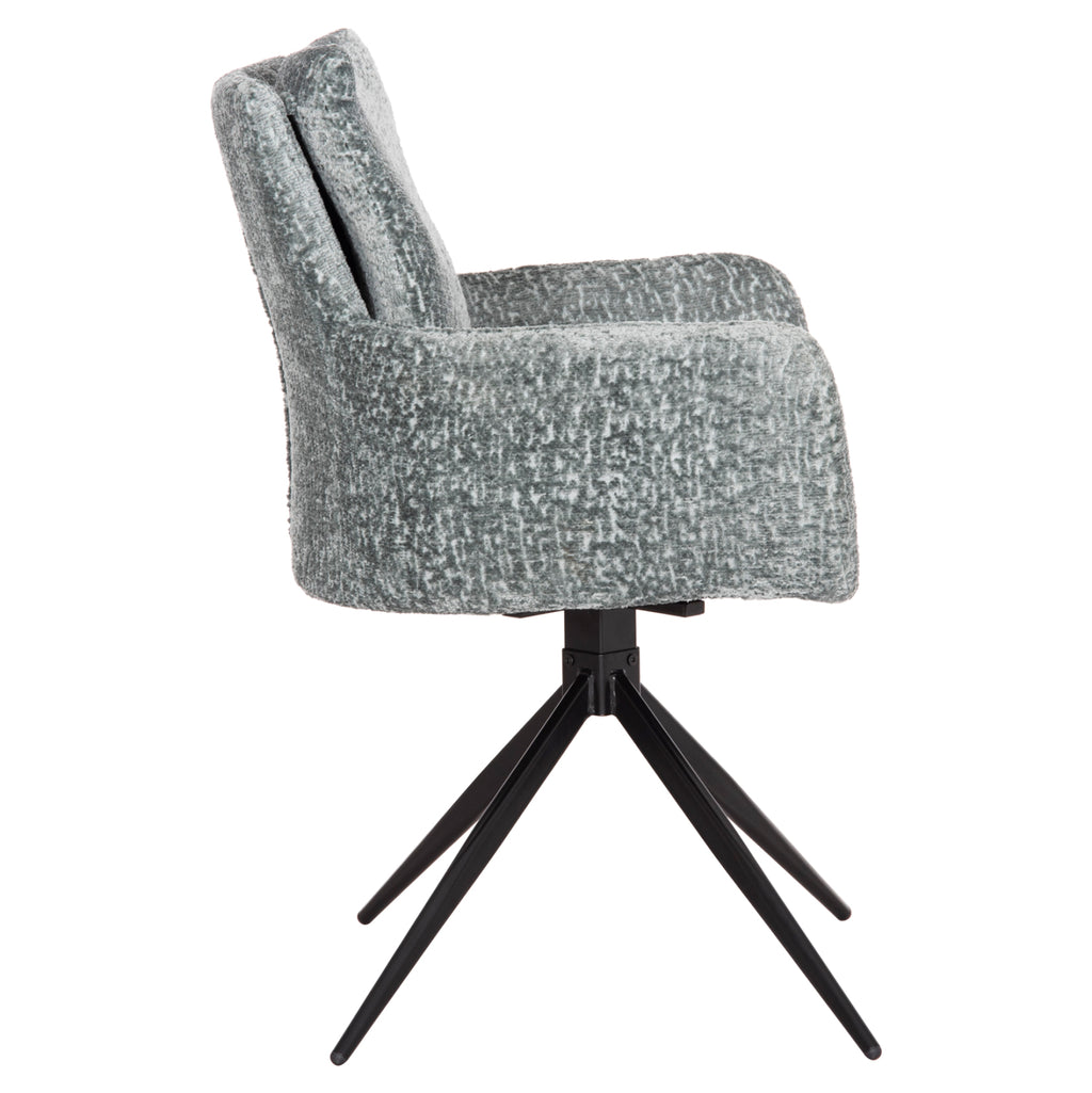 BLANS е въртящо се трапезарно кресло в цвят MINT и е едно от новите попълнения в нашата гама. Той лежи върху черна метална четиризъба основа (крака), върху която е монтиран шарнирният щифт. Тапицерията на фотьойла е изработена от висококачествена дамаска букле, а седалката е удобна, отговаряща на характера на креслото, което е модерно съчетаващо стил и комфорт. РАЗМЕРИ: 62x60x90H см. Размери на седалката: 46х39 см. Размери на гърба: 43.5х45см. Височина на ръцете: 68 см. Височина на седалката: 52см. Височина на крака: 41,5 см. Разстояние на краката: 52-48x55-51 см. МАТЕРИАЛИ НА ИЗРАБОТКА: "Пълнежите" на фотьойла, както на облегалката, така и на седалката, са изработени от дунапрен със средна твърдост, който предлага голям комфорт и по-добра опора на тялото. Цялата подплата е изработена от висококачествена материя BOUQUEL. Всяка тъкан, която има извиване на възел, се нарича букле. Изработено е от почти всички суровини (въпреки че обикновено е синтетично) със специални възли или силно усукани конци, така че да има къдрава повърхност. Не се мачка и може да бъде изчистена, меланжирана, карирана или туид. ПОДДРЪЖКА: Платът от букле можете да избършете с прахосмукачка, а при петна използвайте леко влажна кърпа. ** Цветопредаването на продукта може леко да се различава от неговото фотографско представяне на вашия екран. Продуктът се доставя разглобен във фабрична опаковка