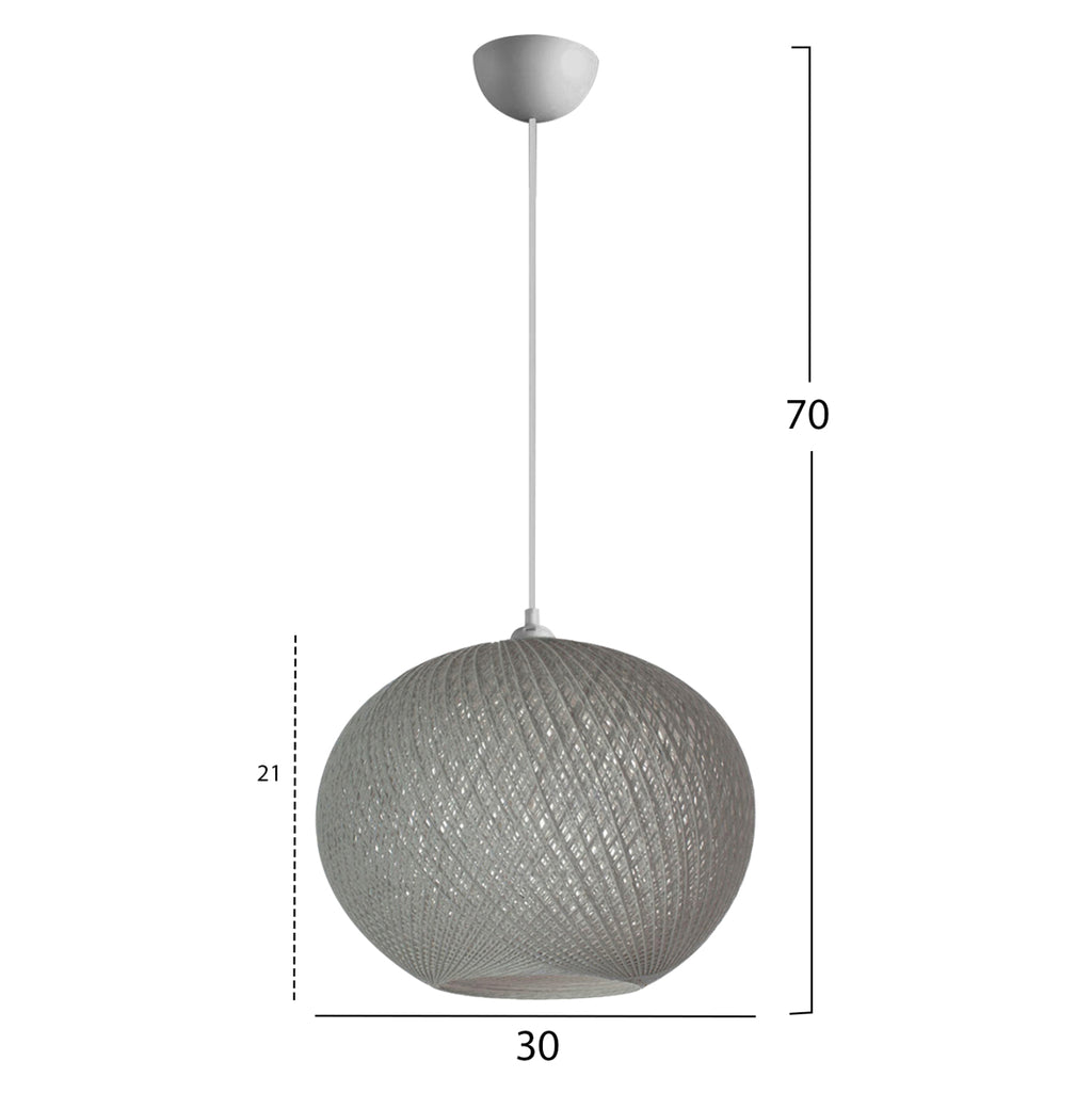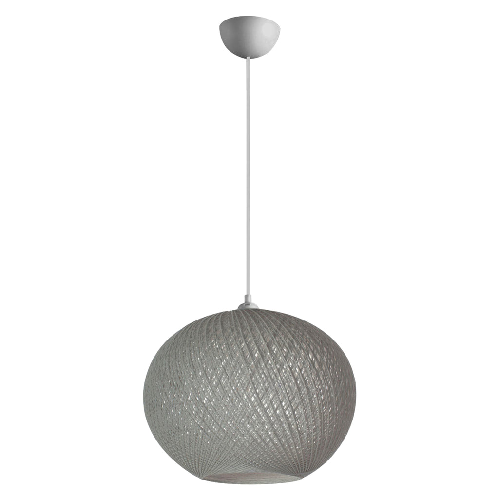 Ако желаете да украсите вашето пространство с лампа в бохо стил, това е правилният избор. Представлява едносветлинна лампа с леко елипсовидна сферична форма и покрита с фино плетено въже, висококачествено и устойчиво на времето, в сив нюанс. Височината на лампата се регулира в зависимост от начина на поставяне, така че да можете да я конфигурирате на височината, която ви удовлетворява. ТЕХНИЧЕСКИ ХАРАКТЕРИСТИКИ: Цокъл на лампата: E27 Нормален цокъл Тип на лампата: LED до 20w- Препоръчва се максимум 60w Размери на "крушка": 30x21см. Обща височина: 70 см. МАТЕРИАЛ НА ИЗРАБОТКА: "Сферата" е изработена от тънко автентично плетено въже. Знаете ли, че....? Въжето е линейна структура, състояща се от влакна, увити едно около друго, използвани за връзване или връзване на предмети или животни. Влакната могат да бъдат растителни (конопени, конопени), кожени, синтетични или метални нишки. Продава се увит на топки или навит в цилиндрична форма. ПОДДРЪЖКА: Лампата не се нуждае от специална поддръжка. Достатъчно е почистване на прах на редовни интервали. Също така, благодарение на устойчивостта на въжето към вода, можете периодично да използвате мокра кърпа, за да почиствате лампата. ПРЕДИМСТВА: Естетическото превъзходство на тази лампа ще я накара да се открои във вашето пространство. Неговата регулируема височина може да предложи различни нива на яркост и визуално удоволствие. Освен в различни стаи във вашия дом, той може да се побере и в професионални помещения като ресторанти, кафенета, хотели и др. Сивият цвят на елипсовата сфера хваща окото и може моментално да промени настроението ви. Светлината се разпръсква прекрасно в пространството през мрежата на сферата и леко създава мрежестата шарка по стените. В същото време може да се комбинира с много други материали и дизайни, за да подчертае напълно естетическите достойнства на лампата, тъй като въжето е идеално за композиране на елегантни жилищни пространства, с безкрайни комбинации с необичайни щрихи.