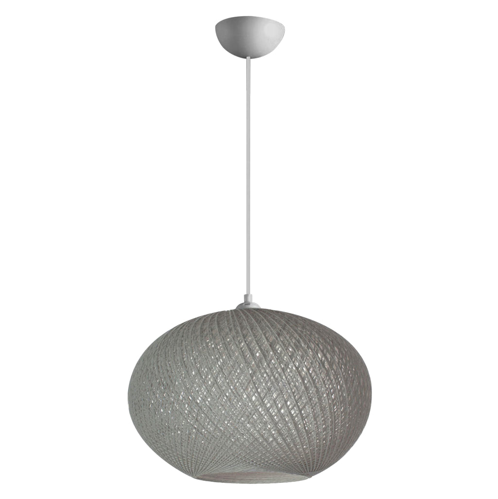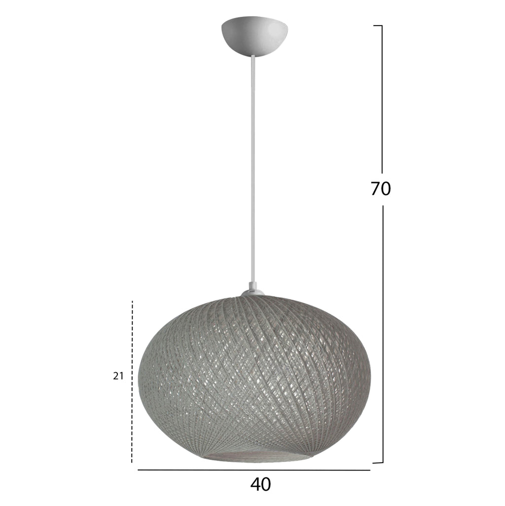 Ако желаете да украсите вашето пространство с лампа в бохо стил, това е правилният избор. Представлява едносветлинна лампа с елипсовидна сферична форма и покрита с фино тъкано въже, висококачествено и устойчиво на времето, в сив нюанс. Височината на лампата се регулира в зависимост от начина на поставяне, така че да можете да я конфигурирате на височината, която ви удовлетворява. ТЕХНИЧЕСКИ ХАРАКТЕРИСТИКИ: Цокъл на лампата: E27 Нормален цокъл Тип на лампата: LED до 20w- Препоръчва се максимум 60w Размери на "крушка": 40x21см. Обща височина: 70 см. МАТЕРИАЛ НА ИЗРАБОТКА: "Сферата" е изработена от тънко автентично плетено въже. Знаете ли, че....? Въжето е линейна структура, състояща се от влакна, увити едно около друго, използвани за връзване или връзване на предмети или животни. Влакната могат да бъдат растителни (конопени, конопени), кожени, синтетични или метални нишки. Продава се увит на топки или навит в цилиндрична форма. ПОДДРЪЖКА: Лампата не се нуждае от специална поддръжка. Достатъчно е почистване на прах на редовни интервали. Също така, благодарение на устойчивостта на въжето към вода, можете периодично да използвате мокра кърпа, за да почиствате лампата. ПРЕДИМСТВА: Естетическото превъзходство на тази лампа ще я накара да се открои във вашето пространство. Неговата регулируема височина може да предложи различни нива на яркост и визуално удоволствие. Освен в различни стаи във вашия дом, той може да се побере и в професионални помещения като ресторанти, кафенета, хотели и др. Сивият цвят на елипсовата сфера хваща окото и може моментално да промени настроението ви. Светлината се разсейва удивително в пространството през мрежата на сферата и създава мрежестата шарка по стените. В същото време може да се комбинира с много други материали и дизайни, за да подчертае напълно естетическите достойнства на лампата, тъй като въжето е идеално за композиране на елегантни жилищни пространства, с безкрайни комбинации с необичайни щрихи.