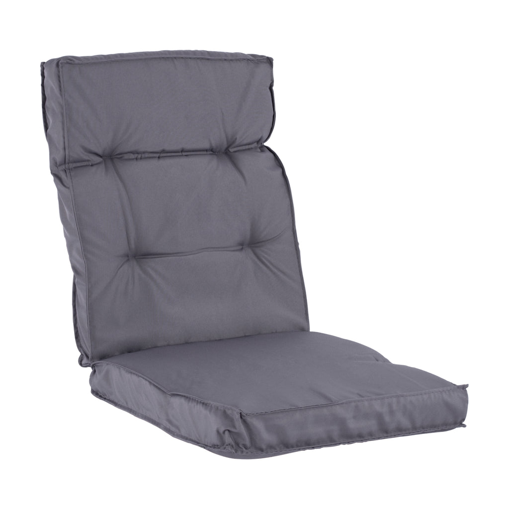 Възглавница за стол с облегалка с дебелина 7 см, в сив нюанс. Размери: 100х46см. Размери на седалката: 46х45 см. Размери на гърба: 46х55см.