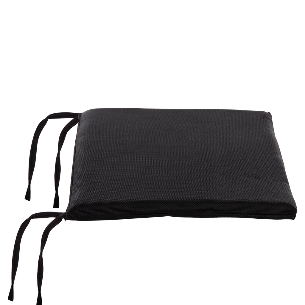 Тази възглавница в ЧЕРЕН цвят пасва на полипропиленови столове BOGI. Възглавницата е изработена от удобна дунапренова материя, като е покрита с качествена водоотблъскваща текстилна материя. РАЗМЕРИ: 43x41x3.5(дебелина)см. МОНТАЖ: Тази възглавница е с въжета, с които се завързва за стола.