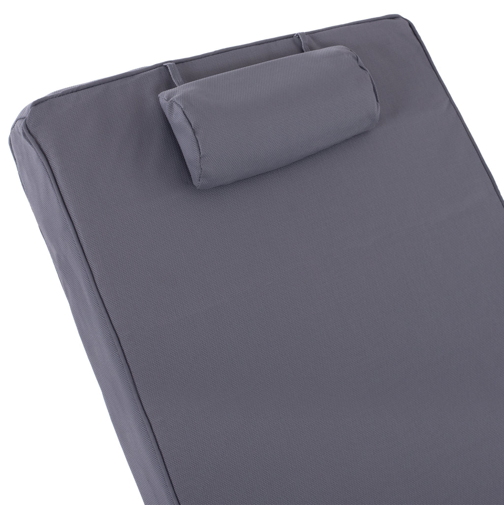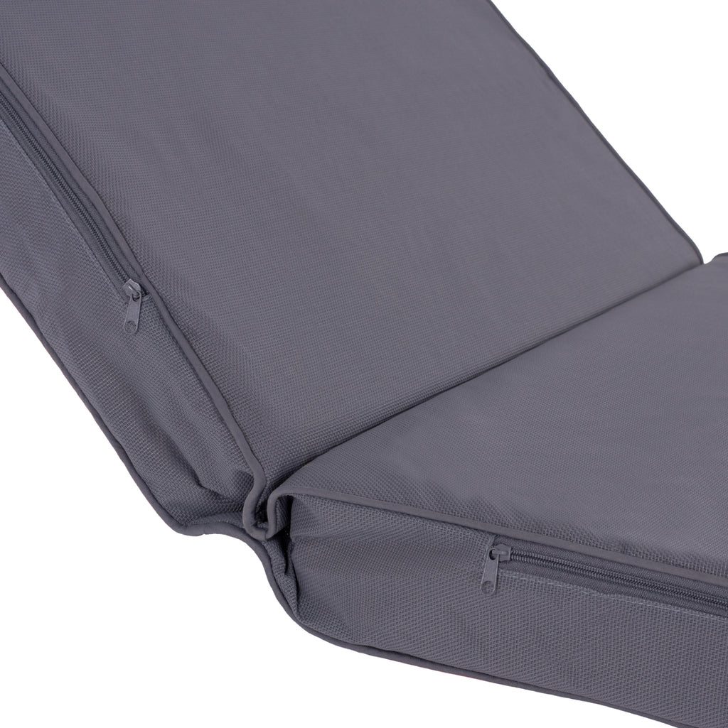 Шезлонг SIFNOS, изработен от текстил в СИВ нюанс. ТЕХНИЧЕСКИ ХАРАКТЕРИСТИКИ TEXTLINE: 600gr/m2 2x1 Професионална конструкция. Идеален за дървени шезлонги. Цвят: СИВ Размери: 72х194см. Глава: 72х73 см. Седалка: 72х114 см. Дебелина на възглавницата: 11см.