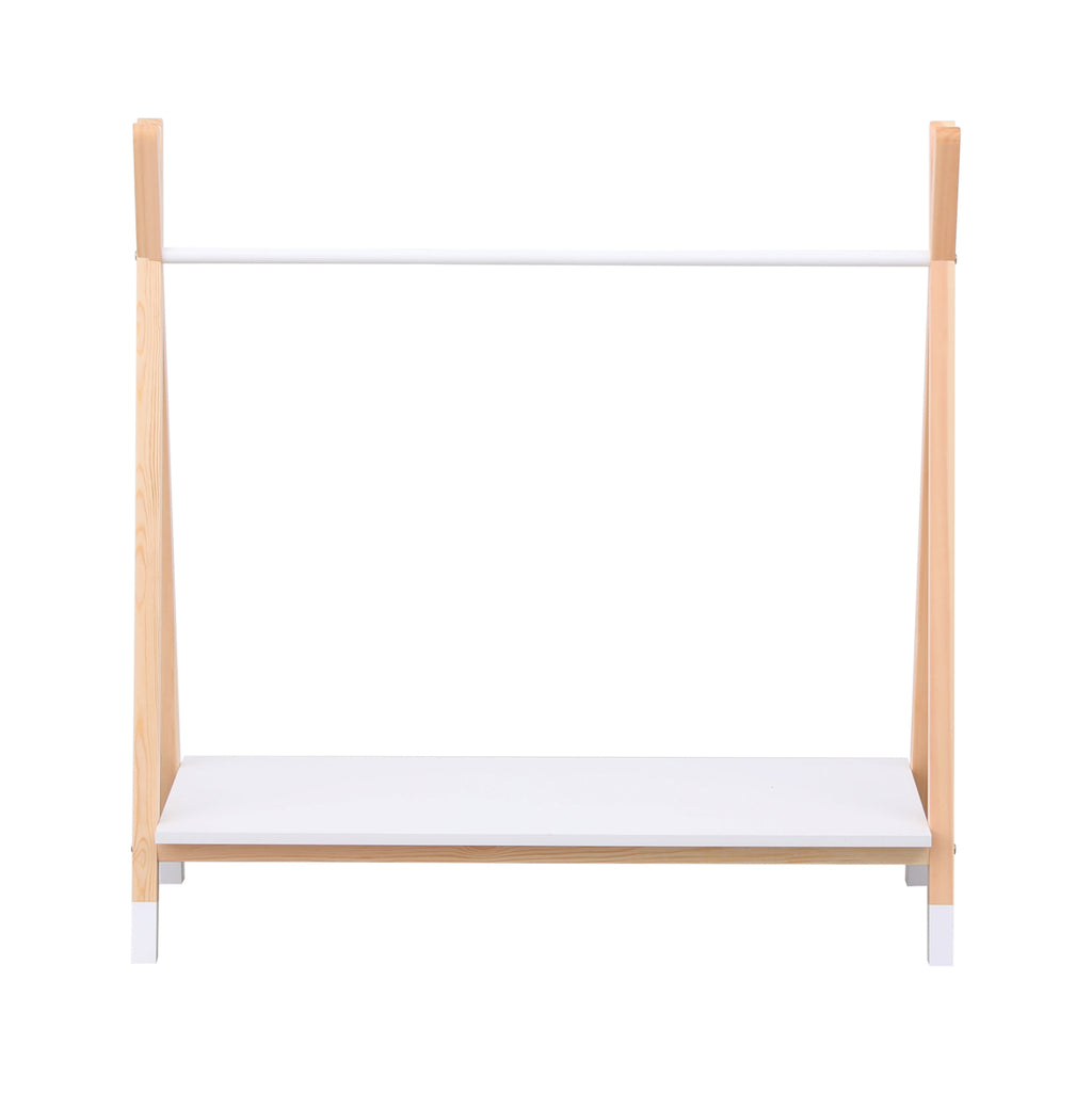 Представяме Ви новата детска отворена закачалка PASCHAL. Удобна е с размери и има щанга за закачане на дрехи и рафт в долната част, в БЯЛ цвят. Опира се на два дървени кръстосани крака в НАТУРАЛЕН дървесен цвят от двете страни. Боядисана е с безвреден лак на водна основа и нетоксичен, идеален за деца. РАЗМЕРИ: 100x40x100H см. МАТЕРИАЛ НА ИЗРАБОТКА: Рафтът е изработен от меламин. Меламинът е вид дървесина под формата на ПДЧ. ПДЧ са продукти, които имат формата на плоча (панел). Така че това е синтетичен материал с много твърда повърхност, което го прави много устойчив на драскотини, абразия и петна. Краката и закачалката са изработени от борова дървесина. Борът е мека, бяла или бледожълта дървесина, която е лека на тегло с прави влакна и е устойчива на свиване, подуване и огъване. ПОДДРЪЖКА: За лесно почистване използвайте влажна кърпа и избършете всички повърхности. Не използвайте силни избелващи средства. *Продуктът се доставя несглобен във фабрична опаковка **Точното цветопредаване на продукта може леко да се различава от действителния продукт поради различните настройки на всеки монитор.