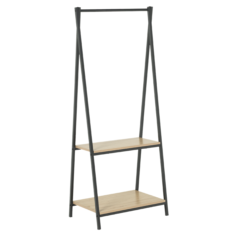 VARNAMO е модерна и функционална стояща закачалка с 2 рафта и един лост за окачане на закачалки за дрехи. Изработена е от праховобоядисан метал и МДФ. Моделът е подходящ както за антрето на съвременния дом, така и офиси, козметични салони и друга професионална среда. Пълна информация за размерите и характеристиките на модела ще намерите в таблицата в таб/поле 'Техническа информация'.