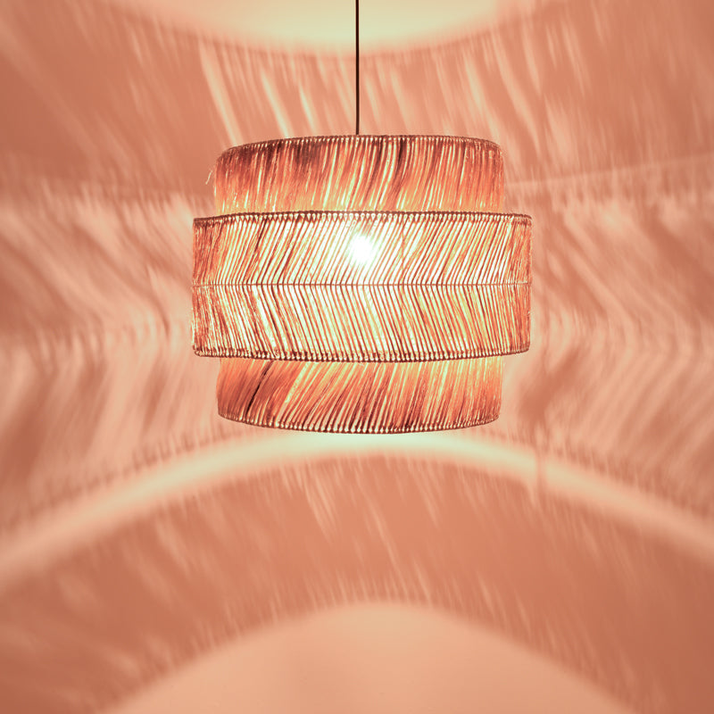 - Абака: Абаката е естествен материал, получен от влакната на растението Musa textilis (вид банан), известно още като манилски коноп. Фибрите от абака се извличат от пулпата на стъблото на банана и са известни със своята здравина, издръжливост и ефирна текстура. Те се използват широко за направата на занаятчийски продукти като кошници, килими, чанти и декоративни елементи. Висулките Abaca са популярен избор за всекидневни, трапезарии и спални. Те могат да добавят тропическо или бохо усещане към всяко пространство.