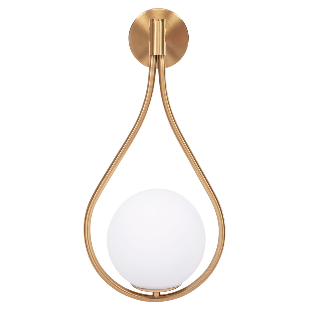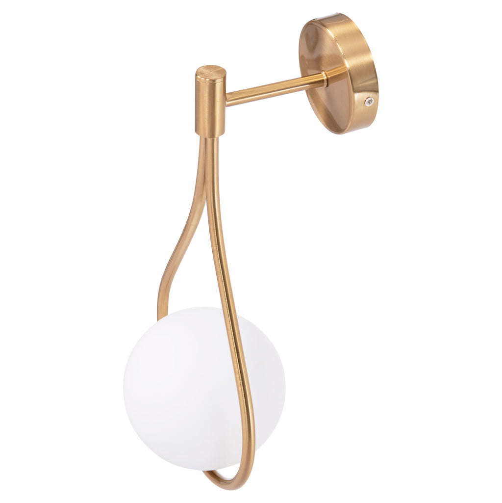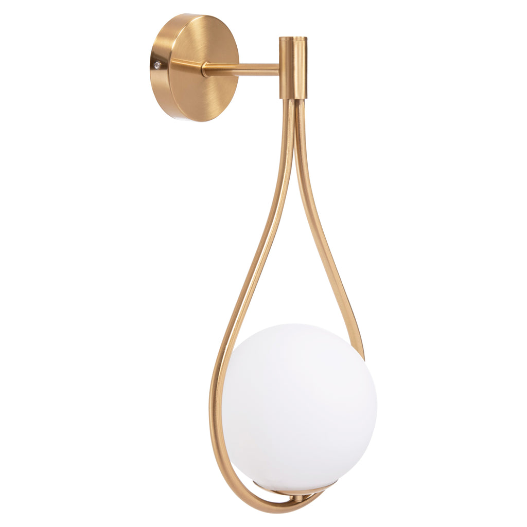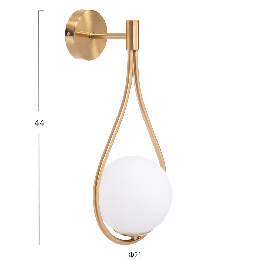Металният аплик BAIS е модерно предложение, което ще привлече окото. Въпреки че е аплик, дизайнът предизвиква ЗЛАТНА висяща „капка“ с бяло кълбо в широкото й дъно.