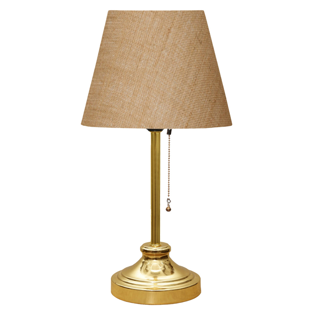 Декоративна настолна лампа с една колона. Основата на лампата е с форма на камбана в блестящ златен цвят, докато стълбът също е в златен цвят. „Шапката“ има пясъчнобежова трапецовидна кръгла форма с дървени пръстени по краищата, докато превключвателят за осветление е традиционен висящ стил до лампата на златна верижка. Светлината се разпръсква приятно в пространството и нейното отражение върху златната колона на лампата, както и върху лъскавата повърхност на основата, играе приятно на окото. Тези видове лампи не са предназначени за лампи за четене и това винаги трябва да се има предвид при избора им. Те са чисто декоративни и съвпадението им с околното пространство трябва да е хармонично. Тази лампа е стилна и с удобни размери, предоставяйки безброй възможности за „свързване“ с останалата част от вашия декор. Това е едно малко произведение на изкуството. ТЕХНИЧЕСКИ ХАРАКТЕРИСТИКИ: Тип цокъл на крушка: E27 Обикновен цокъл на крушка Тип на крушката: LED- Максимална 20w Размери на колектора: 22x17см. Обща височина: 45 см. Дължина на кабела: 150 см. Има CE сертификат. МАТЕРИАЛ НА КОНСТРУКЦИЯТА: Основата на лампата и колоната са метални, предлагащи устойчивост на удари и дълголетие. "Шапката" е изработена от плат и осигурява лекота на почистване и елегантност. Декоративните халки на "шапката" са изработени от MDF дърво. ПОДДРЪЖКА: Лесно почистване може да се извърши с обикновена кърпа за прах за ежедневно почистване. Но за най-добър резултат избършете всички повърхности с влажна кърпа и вашата лампа ще изглежда като нова. Избягвайте използването на химически почистващи препарати, защото те могат да променят цвета. ПРЕДИМСТВА: Това е особено красива лампа, която ще плени очите на всеки, който я погледне, а цветовата й палитра я извежда на следващото ниво. Съчетава хармонично 3 различни материала, а крайният резултат компенсира притежателя си. Благодарение на простия си дизайн, той лесно се комбинира с околното пространство, независимо дали е лека класическа декорация или по-модерна. Той ще добави сладост към атмосферата с финото си и релаксиращо осветление, което прави много трудно да устоите на неговата компания! Идеален както за дома, така и за бизнес зони като ресторанти, кафенета, хотели и др.